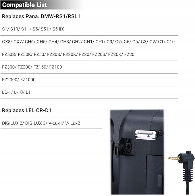 Соединительный кабель JJC для Panasonic S1 S1R S1H S5 S5II S5IIX FZ200 GH6 GH5 GH4 G6 GX7 GX8 и т. д. Замена беззеркальной цифровой камеры для Panasonic DMW-RS1 DMW-RSL1