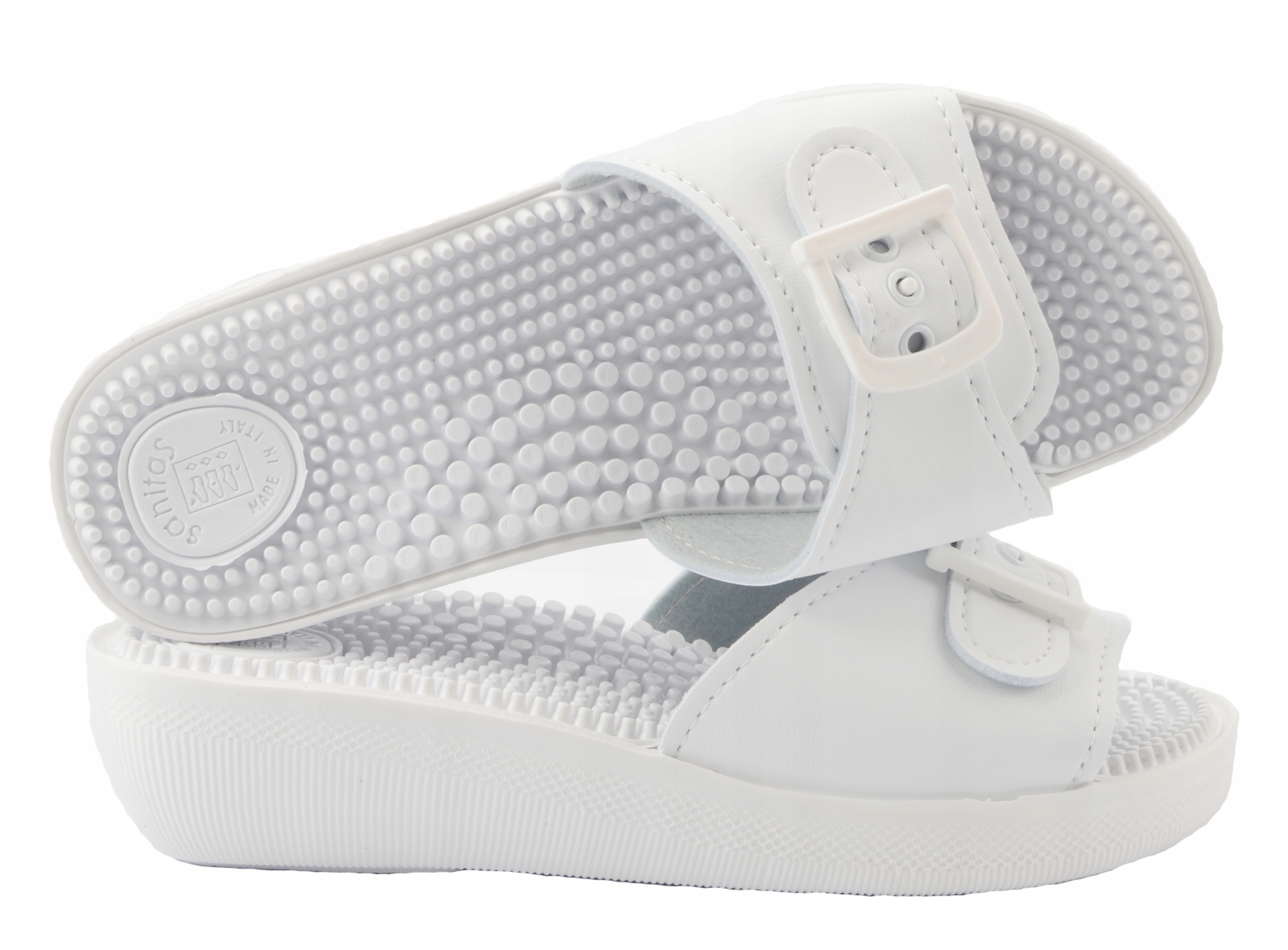 Подошва и анатомическая стелька из полиуретана с выступами, массирующими стопу при ходьбе.