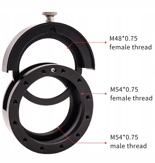 • Нить со стороны камеры: M54 мм * 0,75 (мужчина - используется для камер ASI6200)