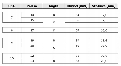 США 10, внутренний диаметр 19,80 мм, внутренняя окружность 63 мм PL 23