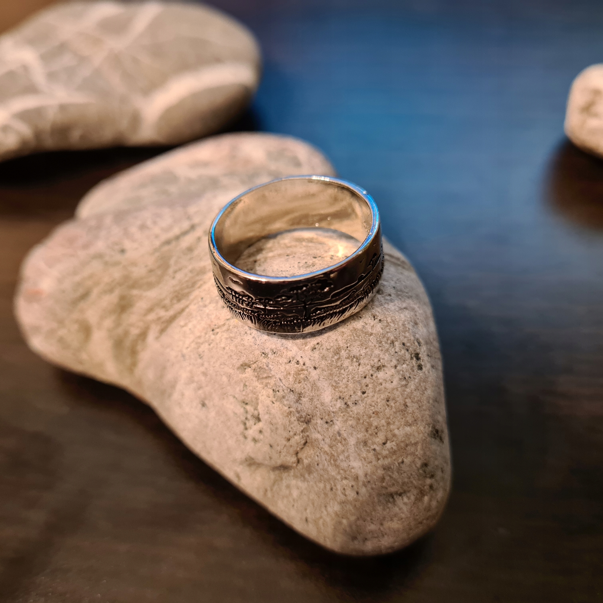 Красивое серебряное обручальное кольцо в стиле африканского сафари