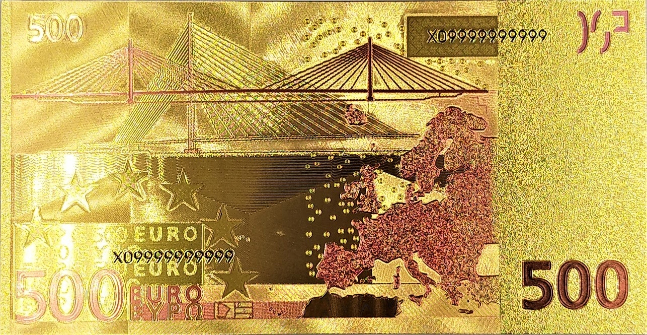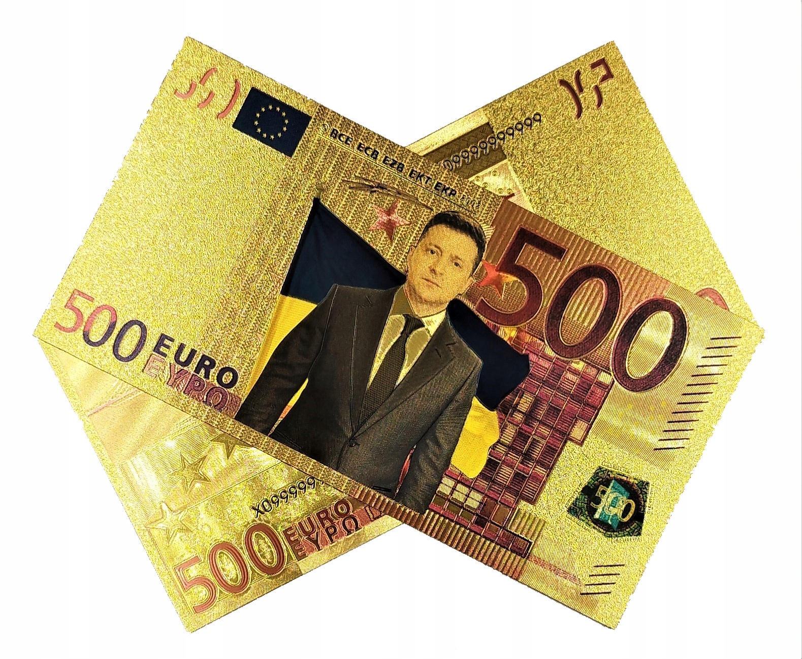 Красивая позолоченная банкнота 500 ЕВРО ВЛАДИМИРА ЗЕЛЕНСКОГО .
