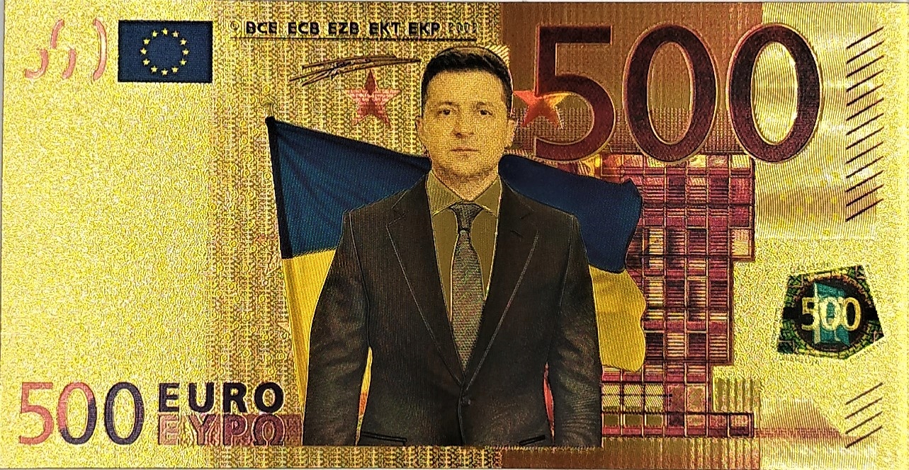 ПОЗОЛОЧЕННАЯ БАНКНОТА 500 ЕВРО ВЛАДИМИР ЗЕЛЕНСКИЙ