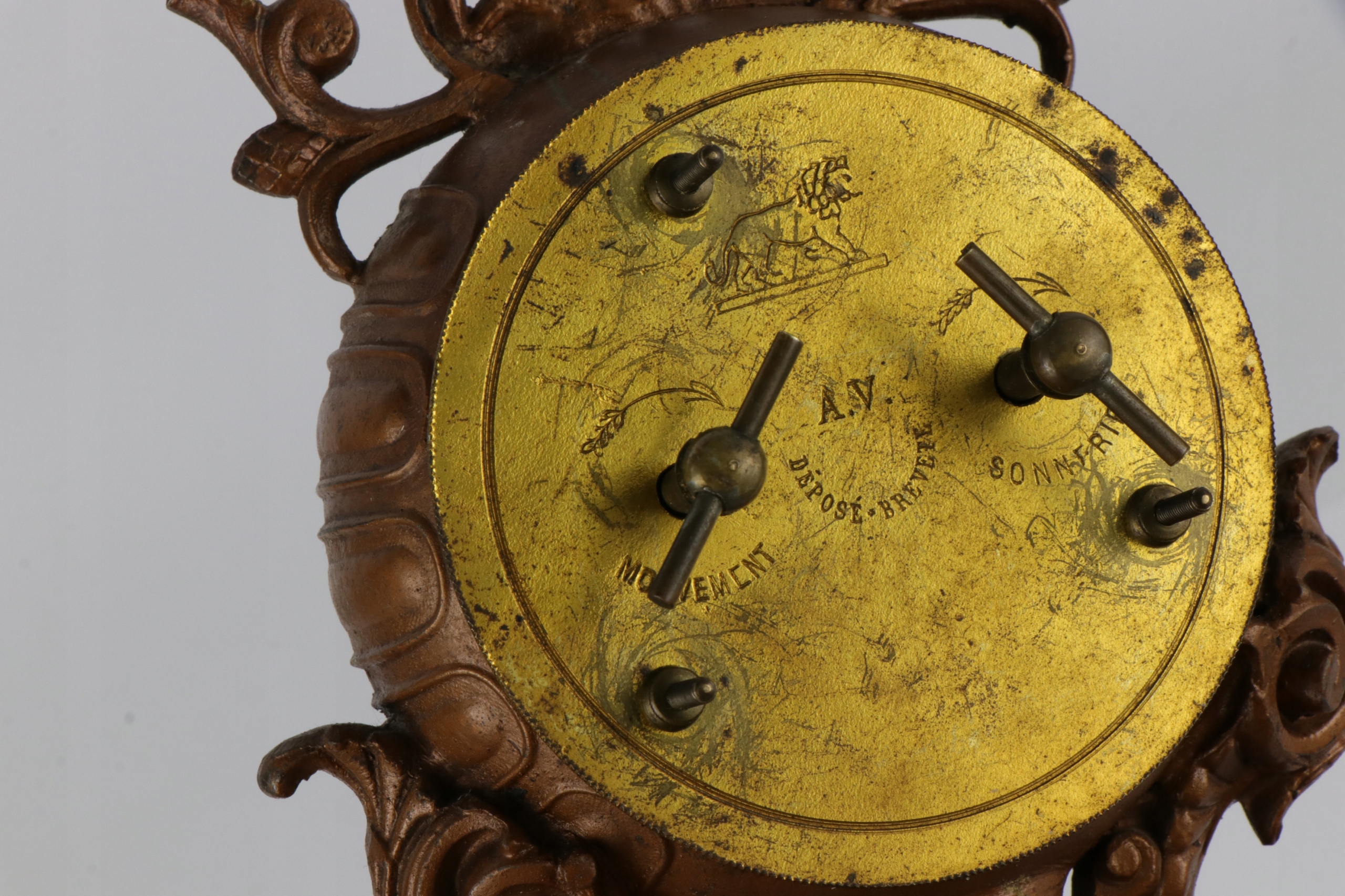 Как видно на фотографиях. Слышно, как механизм работает исправно, но руки не двигаются. Пружины хорошие, можно заводить. Механизм продается как неисправный и требует ремонта. Ремонтируется с двумя ножками у основания.