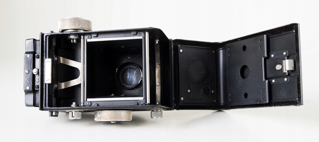 Сегодня я выпускаю немецкую двухлетнюю камеру Zeiss Icon ikoflex IA. Камера была охарактеризована на фоне других икофлексов, главным образом, что параметры экспозиции были поданы в верхней линзе, благодаря тому, что они удобно читали во время проведения камина. Было две версии этих камер - одна, в которой параметры установки имели место с использованием рычага в нижней части камеры, а другой - новее, в которых были ручки на боковой стороне вершины, как в роллефлексе. Аукционная модель - это новое разнообразие. В дополнение к этим функциям все технические параметры камеры очень похожи на Rolleicord-модель имеет натяжение с использованием ручки, счетчика рамки, дополнительно с запасным окном для ручного предварительного просмотра клетки, простого калькулятора экспозиции на Сторона камина, Zeiss-Opton Tessar 3.5/75 фотообъектив и дерьмо с синхроком с диапазоном времени 1S.-1/500S. + B. Модель была произведена в 1953 году по 1958 год.