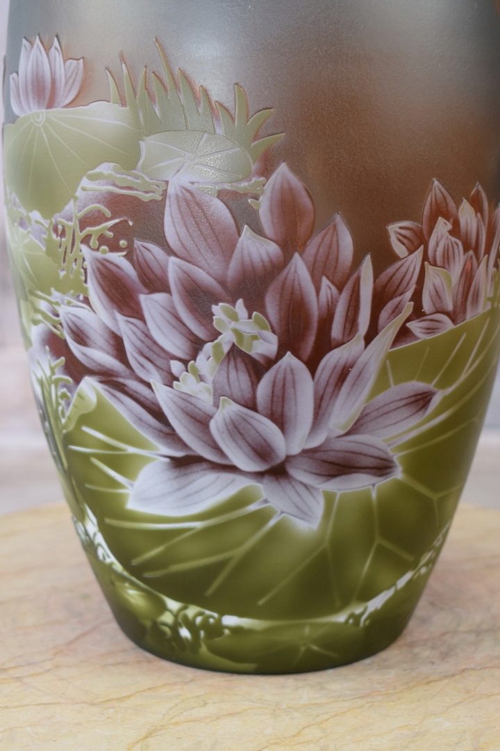 Приглашаем вас открыть для себя уникальную вазу Эмиля Галле — настоящую икону искусства. Эта ваза, изготовленная из высококачественного толстого стекла, излучает элегантность и изысканность, перед которой трудно устоять.