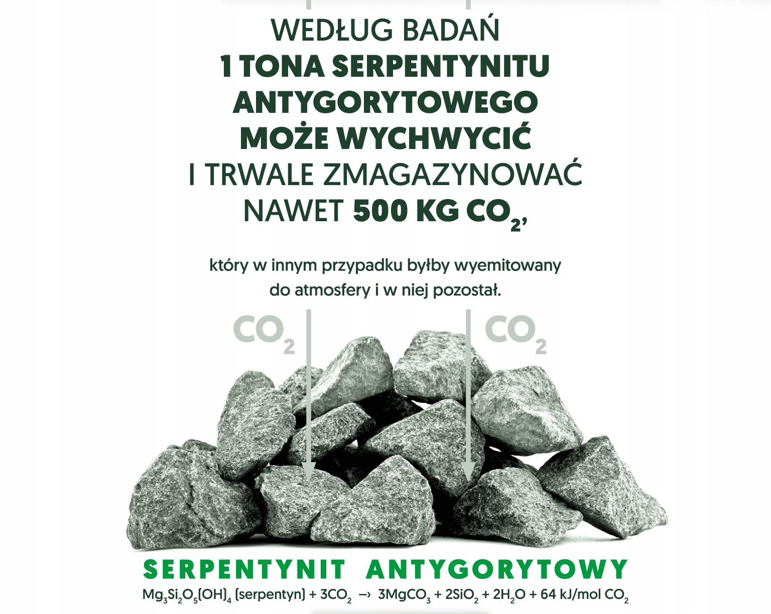 Серпентинит способствует поддержанию экологического баланса нашей планеты. Как это работает? Существует естественный феномен улавливания и безопасного удаления CO2. Этот процесс называется естественной секвестрацией углекислого газа. Этот естественный процесс возможен благодаря тому, что серпентинит — горная порода, чрезвычайно богатая оксидами магния и кальция, на которых основано явление очистки воздуха от CO2.