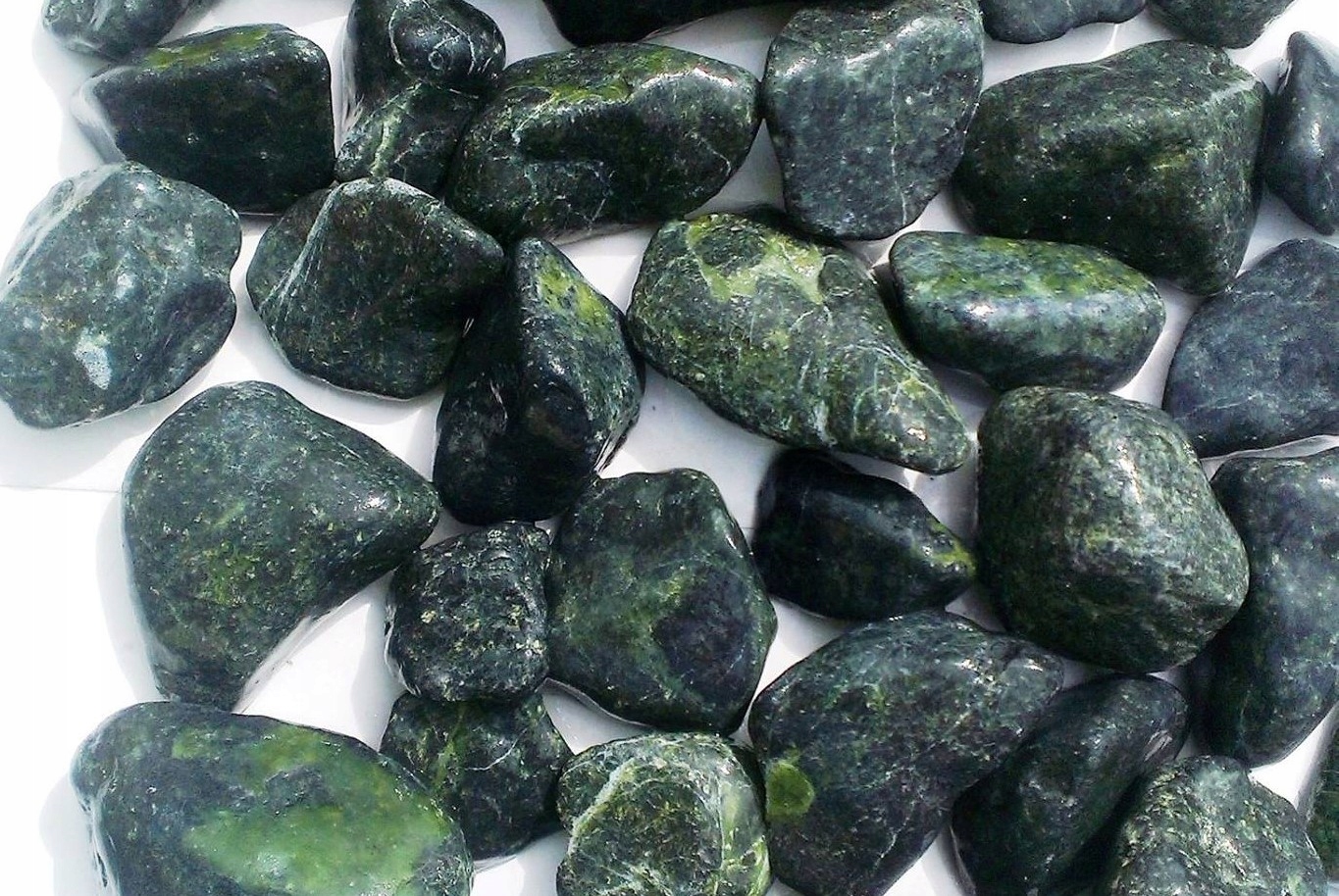 Натуральная зеленая галька из единственного в Польше антигорит-серпентинитового рудника в Наславице, камни диаметром от 40 до 60 мм.