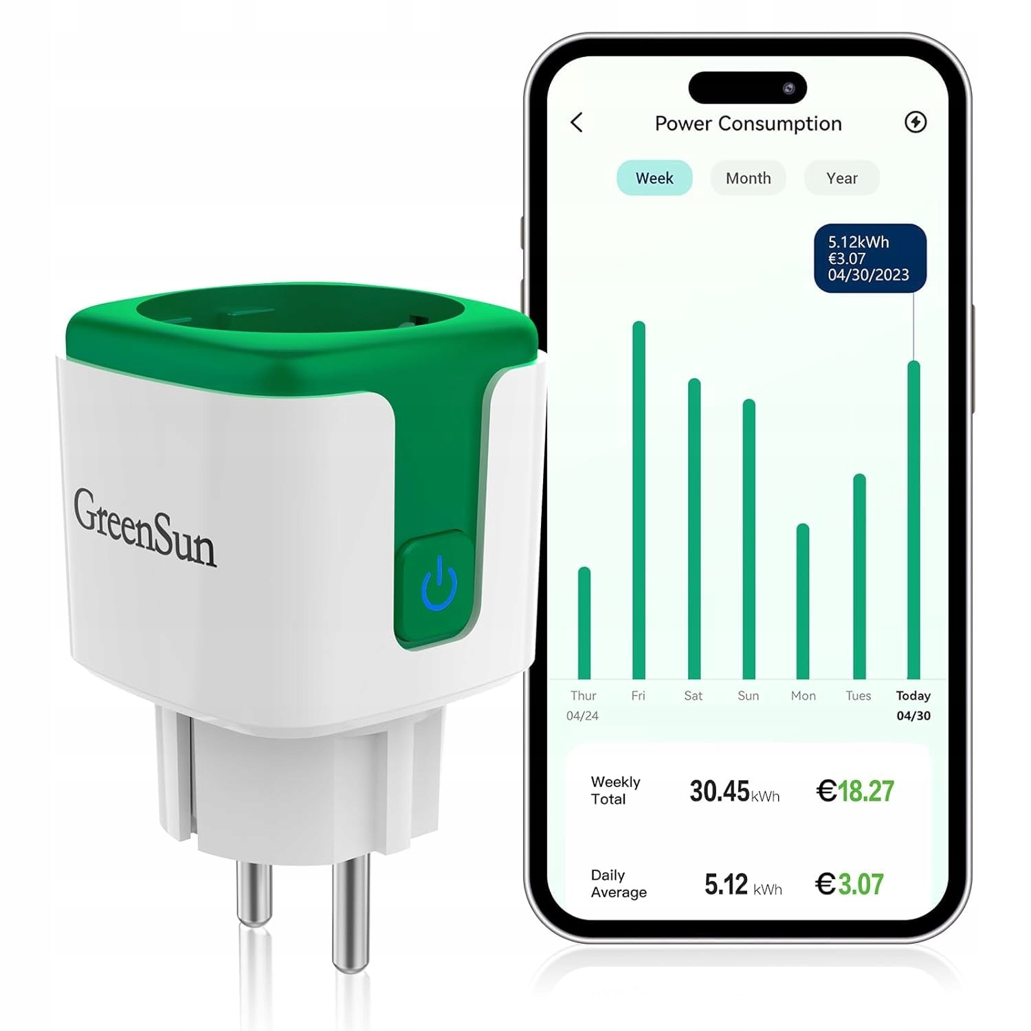 Зеленое солнце интеллектуальное сокет Wi -Fi с измерителем энергии и таймером