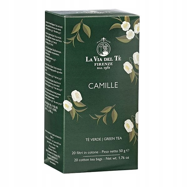 Чай La Via Del Te Camille представляет собой смесь зеленых чаев из Японии и Китая в сочетании с бутонами роз, цветами апельсина, красной смородиной и натуральными ароматами. Настой имеет золотисто-желтый цвет и фруктовый, стойкий аромат киви и груши. Вкус сбалансированный, мягкий и слегка терпкий.