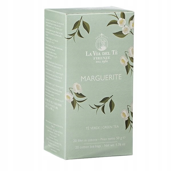 Чай La Via Del Te Marguerite – зеленый чай с добавлением бутонов розы, клубники, аромата жасмина и лепестков василька. Темно-золотистый настой имеет фруктовый аромат с нотками жасмина. Вкус очень хорошо сбалансированный, нежный с явно выраженными нотками жасмина.