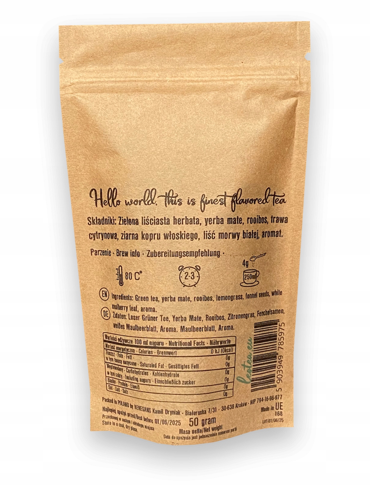 Эта уникальная смесь обеспечивает не только богатые вкусовые ощущения, но и пользу для здоровья. Зеленый чай и мате известны своими защитными свойствами, а ройбуш богат антиоксидантами. Лемонграсс обладает расслабляющими свойствами и стимулирует пищеварение, а лист белой шелковицы может поддержать иммунную систему. Фенхель успокаивает пищеварительную систему, а кожура лайма содержит ценные витамины и минералы.