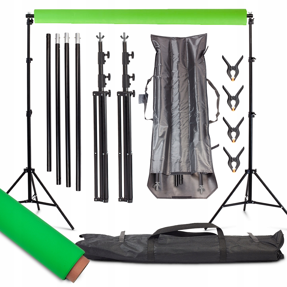 Набор для фотосъемки: телескопическая балка, 2 штатива + картонный фон Green Screen + 4 клипа