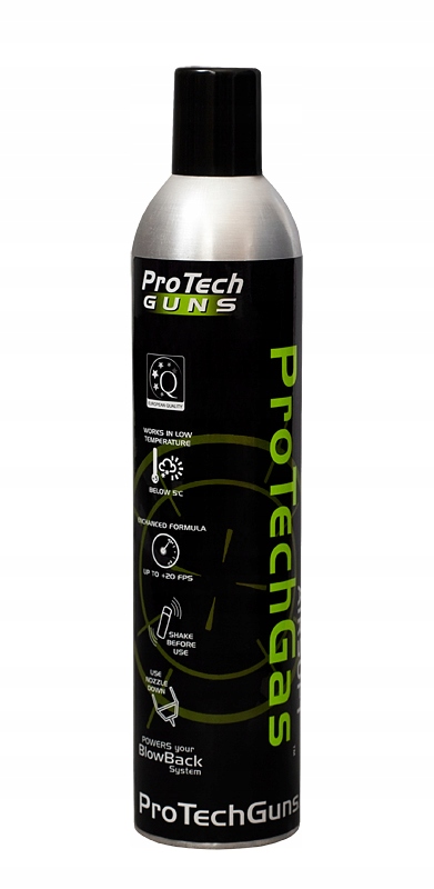 зеленый газ предназначен для подачи реплик ASG. усредненное давление позволяет использовать его во всех репликах, не опасаясь повреждения. Он содержит силиконовое масло , которое защищает и смазывает элементы реплик. Бно Его усредненное давление позволяет использовать во всех репликах AirSoft, которые используют газ в качестве захватывающего материала, не опасаясь повреждения замка или клапана вашей реплики. Наш Protechgas содержит сбалансированное количество силиконового масла, которое защищает и смазывает элементы используемого оружия. и специальный клапан позволит вам заряжать журналы независимо от местоположения выпускного сопла контейнера. , 800 мл) идеально подходят для домашнего использования или в более длинных играх ASG, и эти меньшие газовые контейнеры (520 мл, 120 мл) - которые вы можете легко скрыть в держателе вашего оборудования, без заметного увеличения его веса Protechgas является идеальным агентом для реплик, оснащенных ударом. наших продуктов!