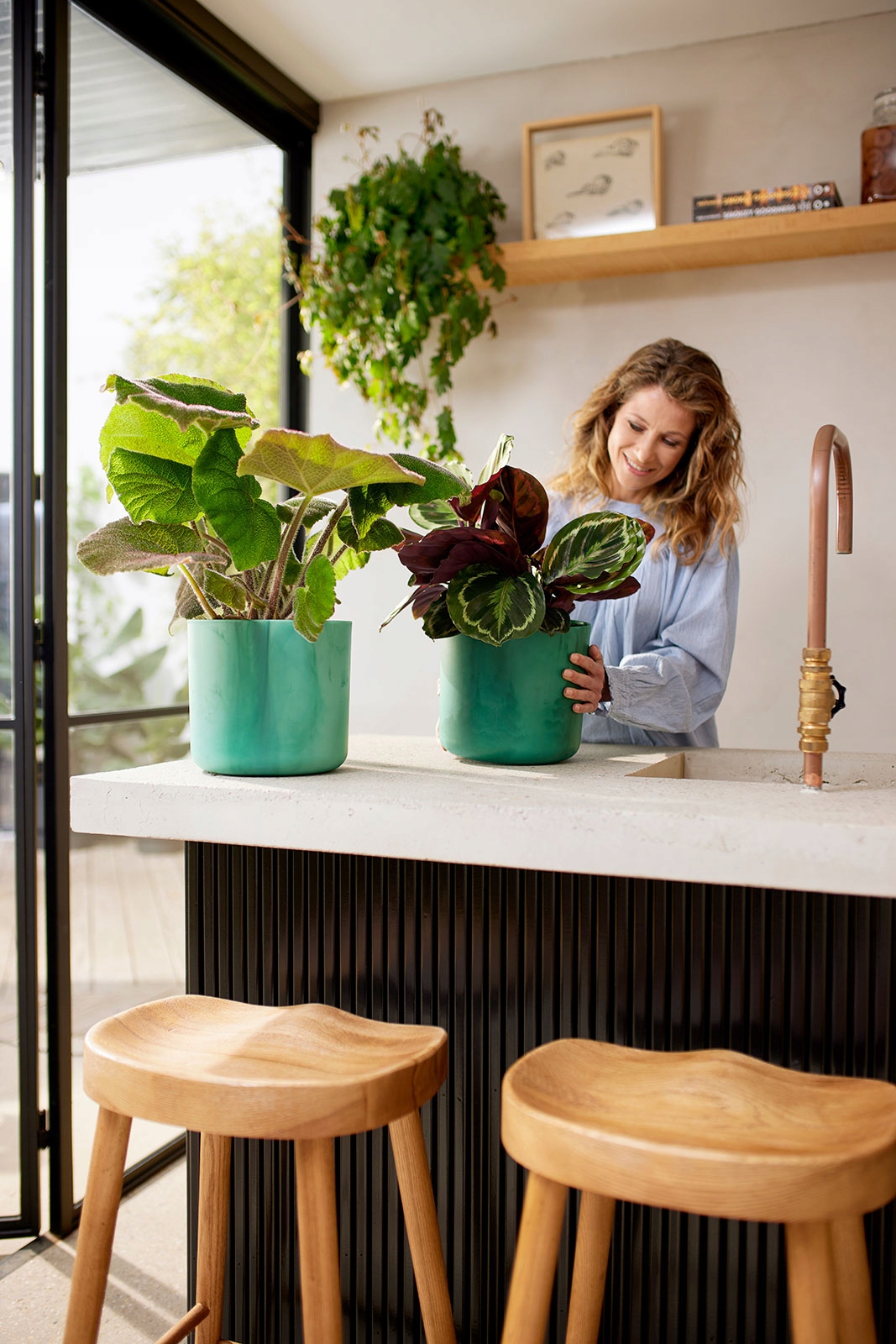 Происхождение выброшенных веревок и рыболовных сетей отражено в синем и зеленом мраморе. акценты в горшках «The Ocean Collection»