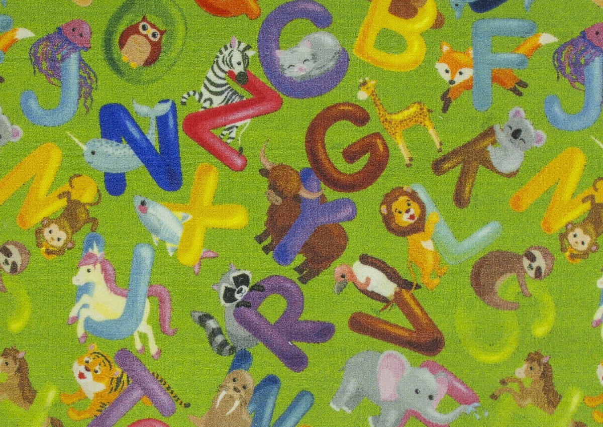 ЗЕЛЕНЫЙ КОВЕР ДЛЯ ДЕТСКОЙ КОМНАТЫ БУКВЫ АЛФАВИТА ЖИВОТНЫЕ 70х200 см