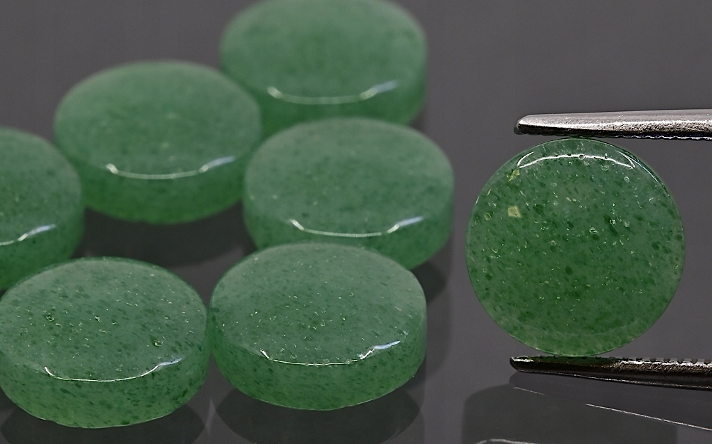 Зеленый кварц и круглую выпуклую плитку Fi 8 мм