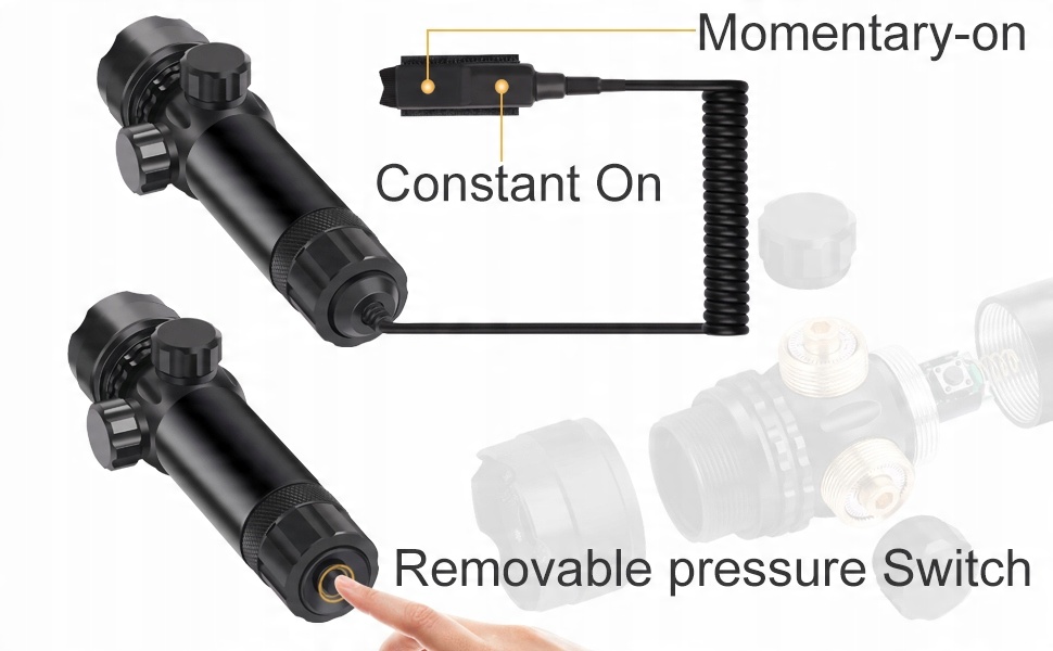 Оснащен тактическим манометрическим выключателем. Двойной переключатель.