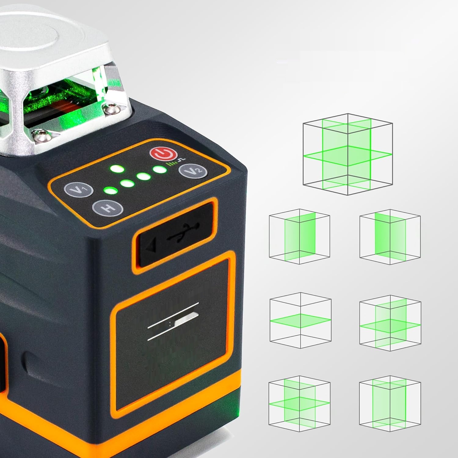 CIGMAN 3 x 360° зеленый самовыравнивающийся лазер, 30 часов с литиевой батареей.