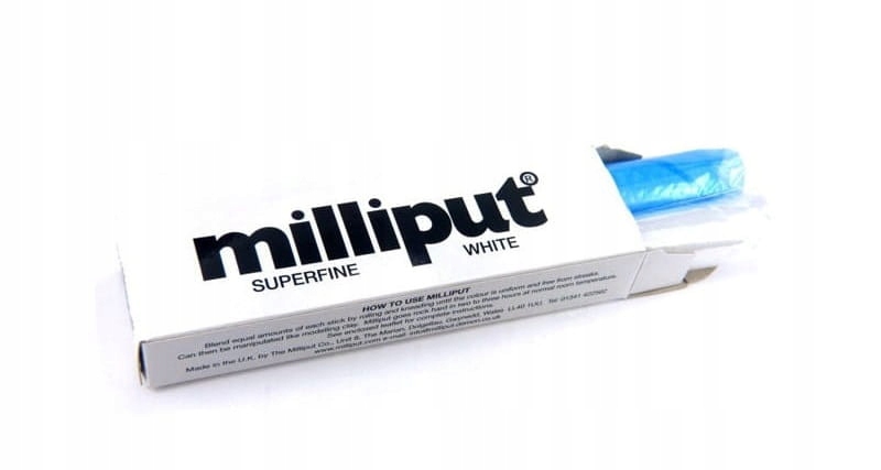 Milliput White похож на Milliput Standard, но гораздо лучше подходит для достижения более тонких и мелких деталей во всех типах приложений. В каждой упаковке находится два отдельных кубика, один из которых – отвердитель. После смешивания равного количества стержней друг с другом материал начинает твердеть и полностью затвердевает через 90 минут, после чего его можно резать, шлифовать, сверлить и резать.
