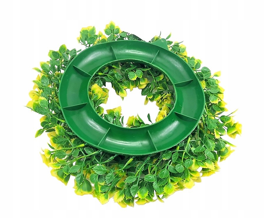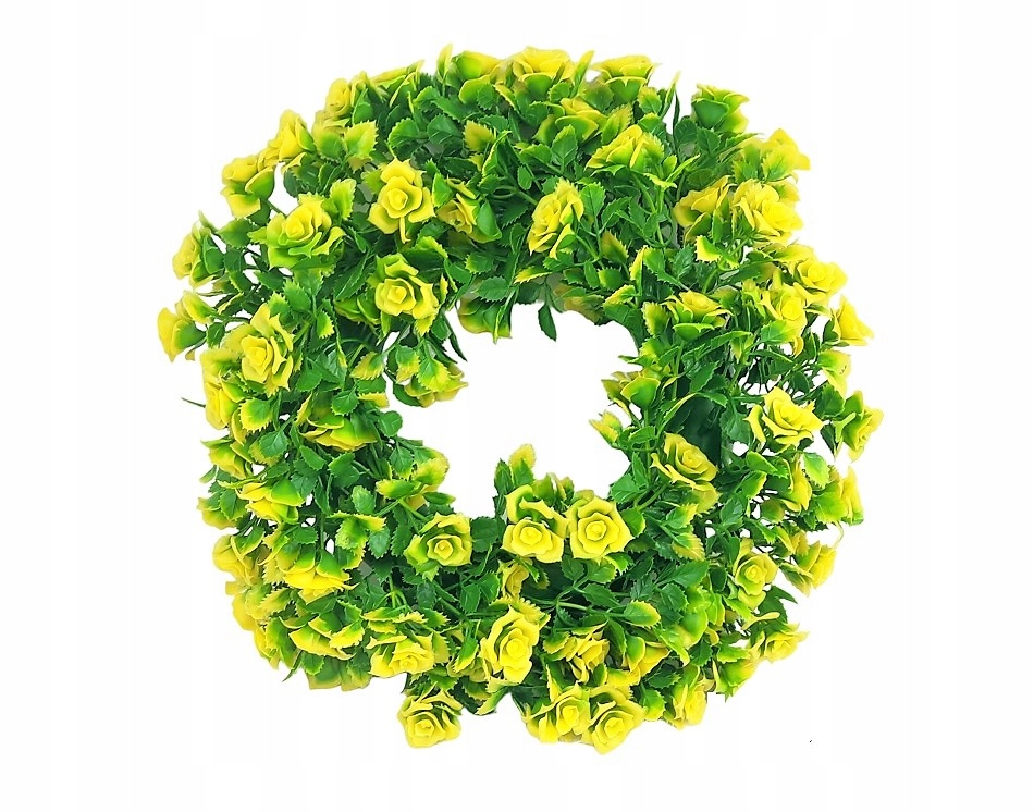 ИСКУССТВЕННЫЙ ЗЕЛЕНО-ЖЕЛТЫЙ ВЕНОК С РОЗАМИ.
