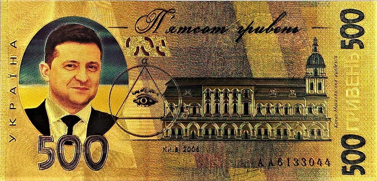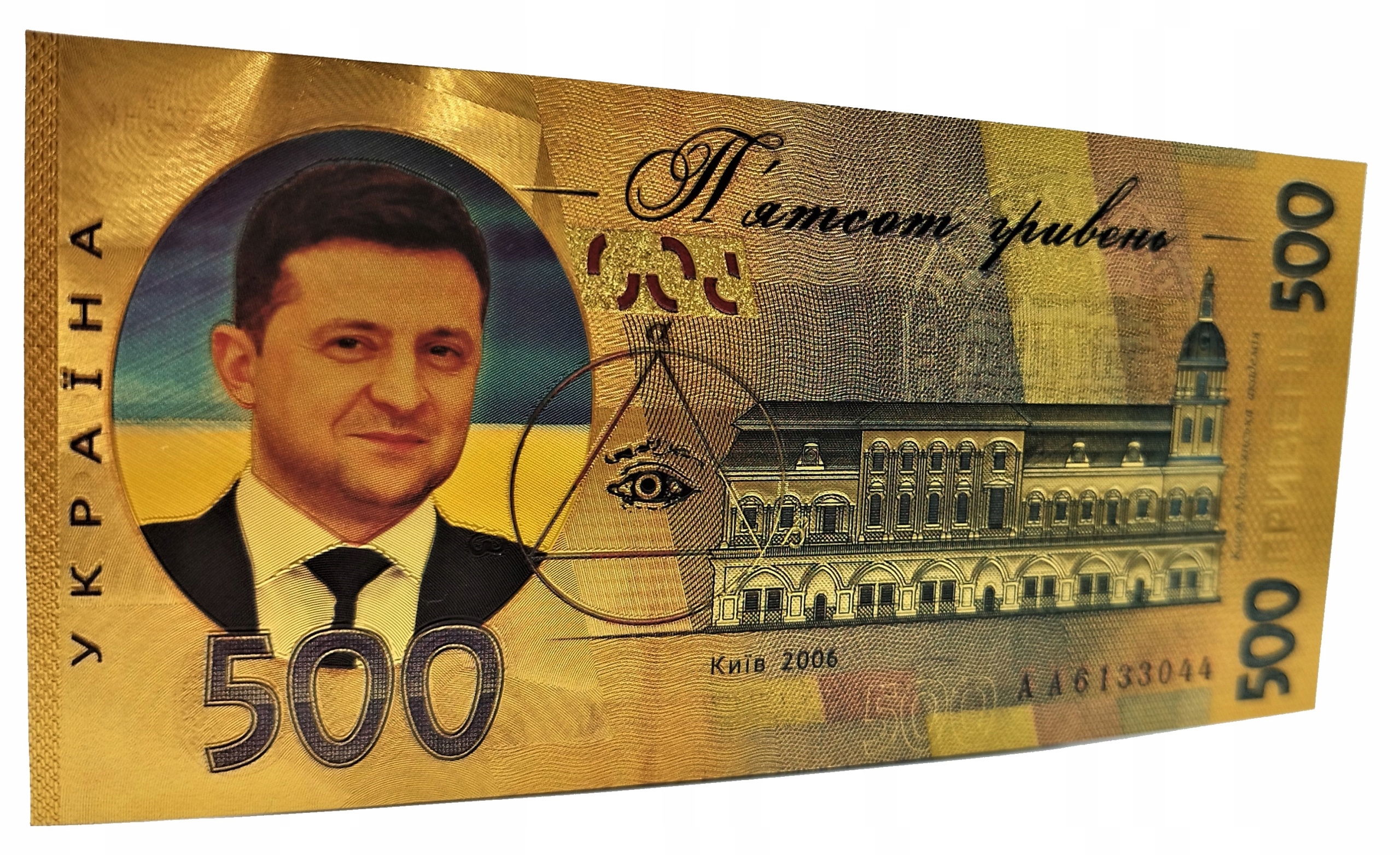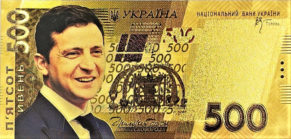 ПОЗОЛОЧЕННАЯ БАНКНОТА 500 ГРНИВ ВЛАДИМИР ЗЕЛЕНСКИЙ