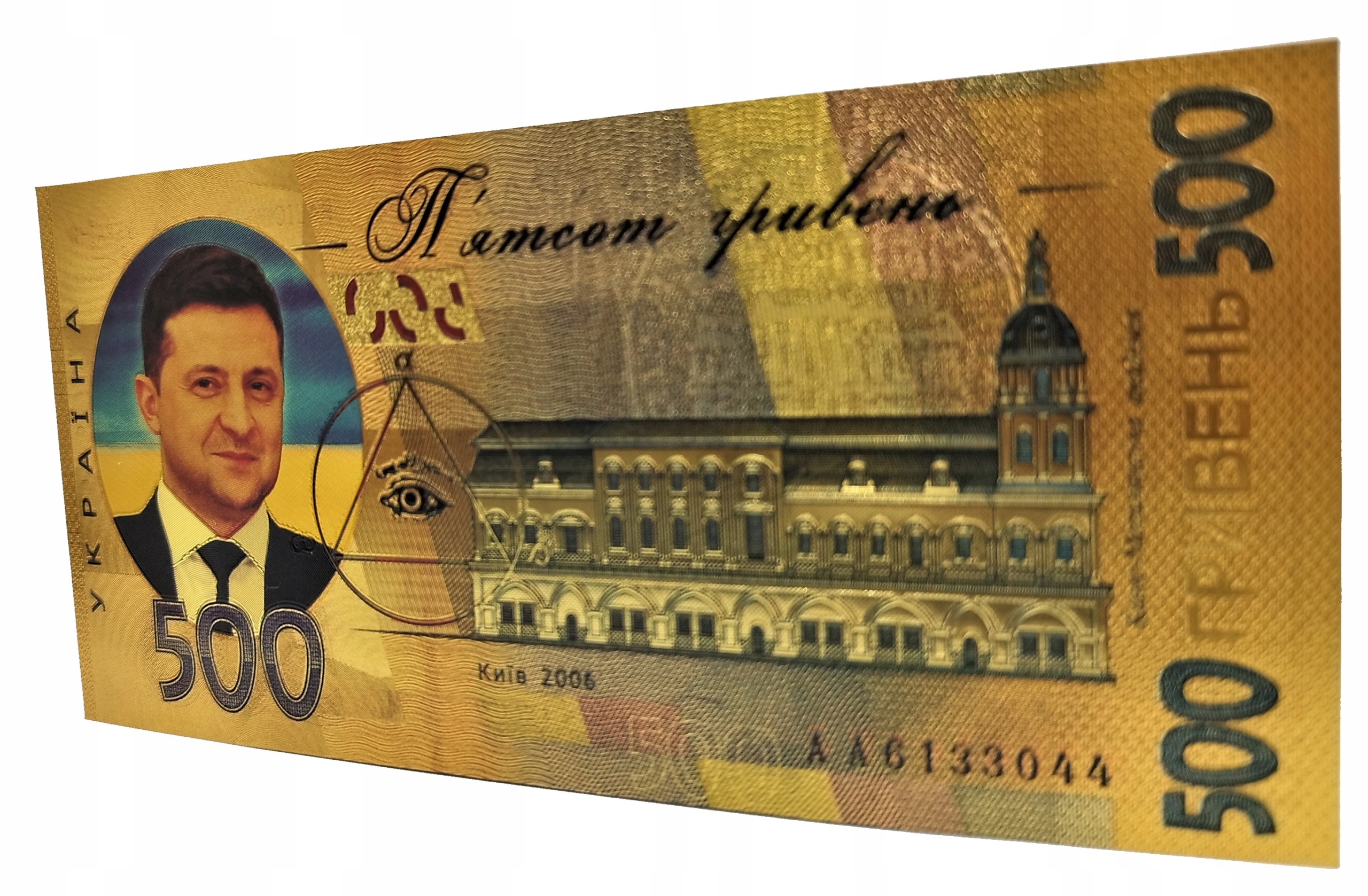 ЗЕЛЕНСЬКИЙ ВОЛОДИМИР Банкнота номіналом 500 гривень позолочена