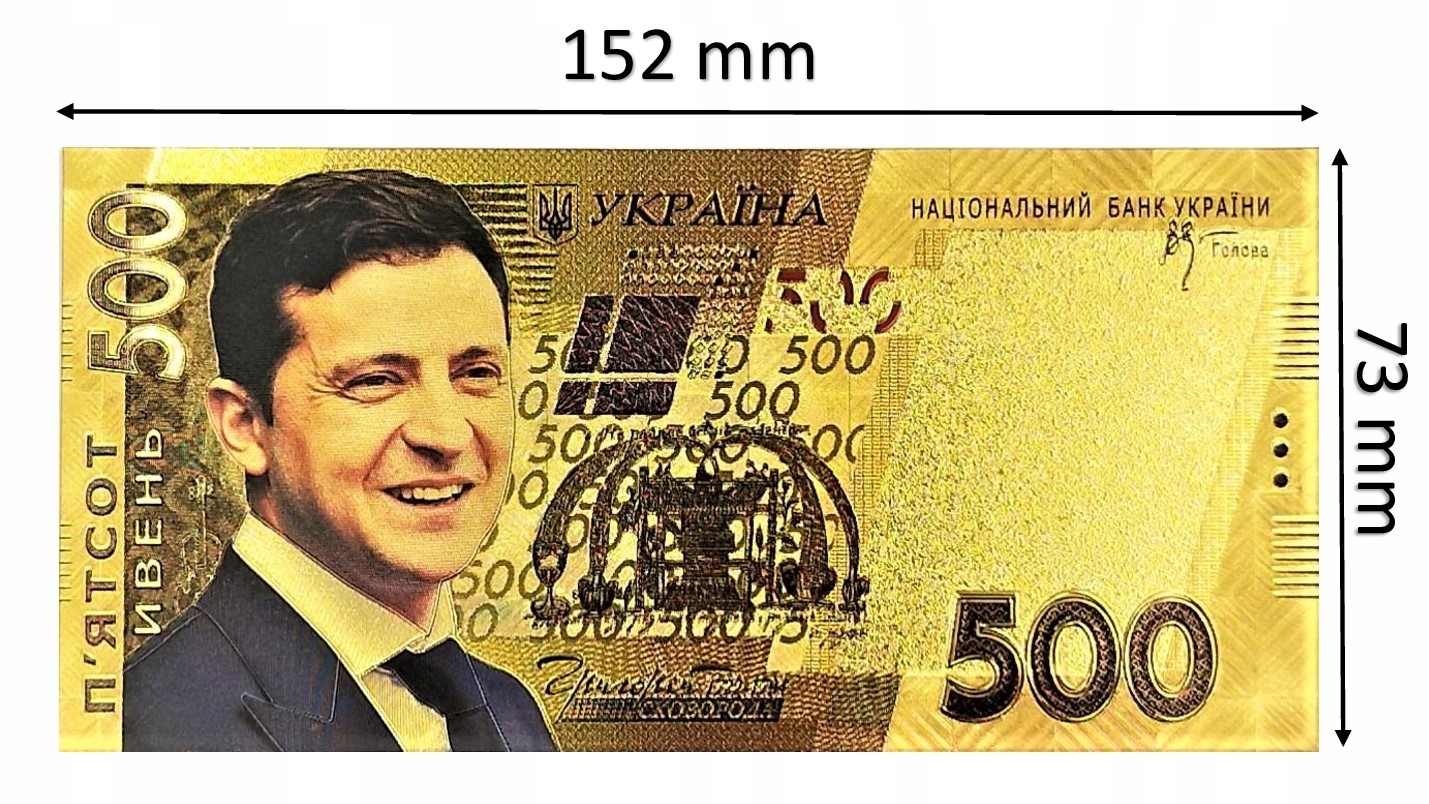 Красивая позолоченная банкнота 500 гривен ВЛАДИМИР ЗЕЛЬНСКИЙ .