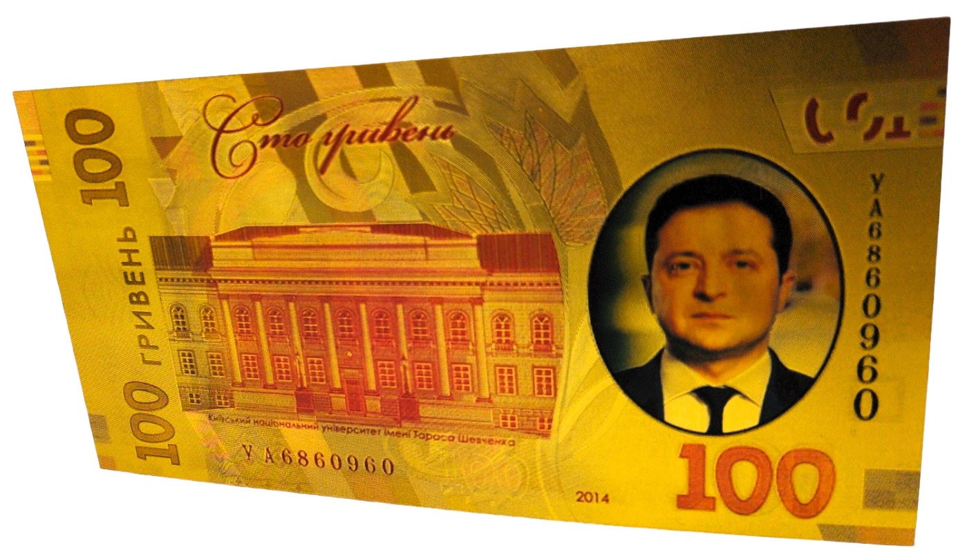 ЗЕЛЕНСЬКИЙ ВОЛОДИМИР Колекційна позолочена банкнота номіналом 100 гривень УНІКАЛЬ