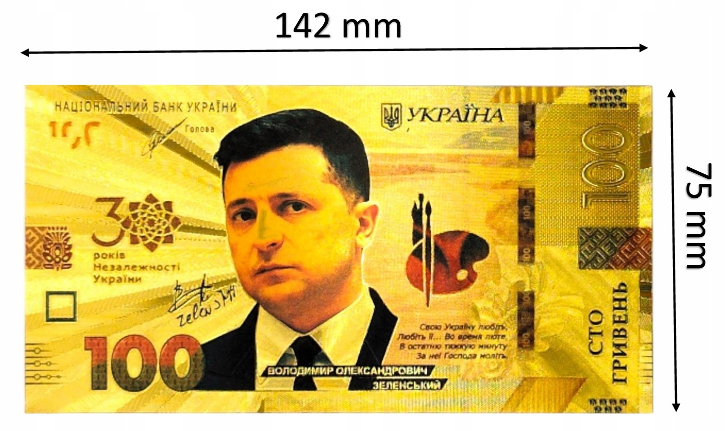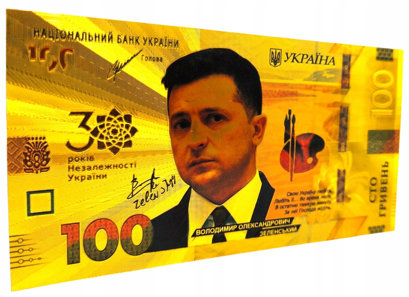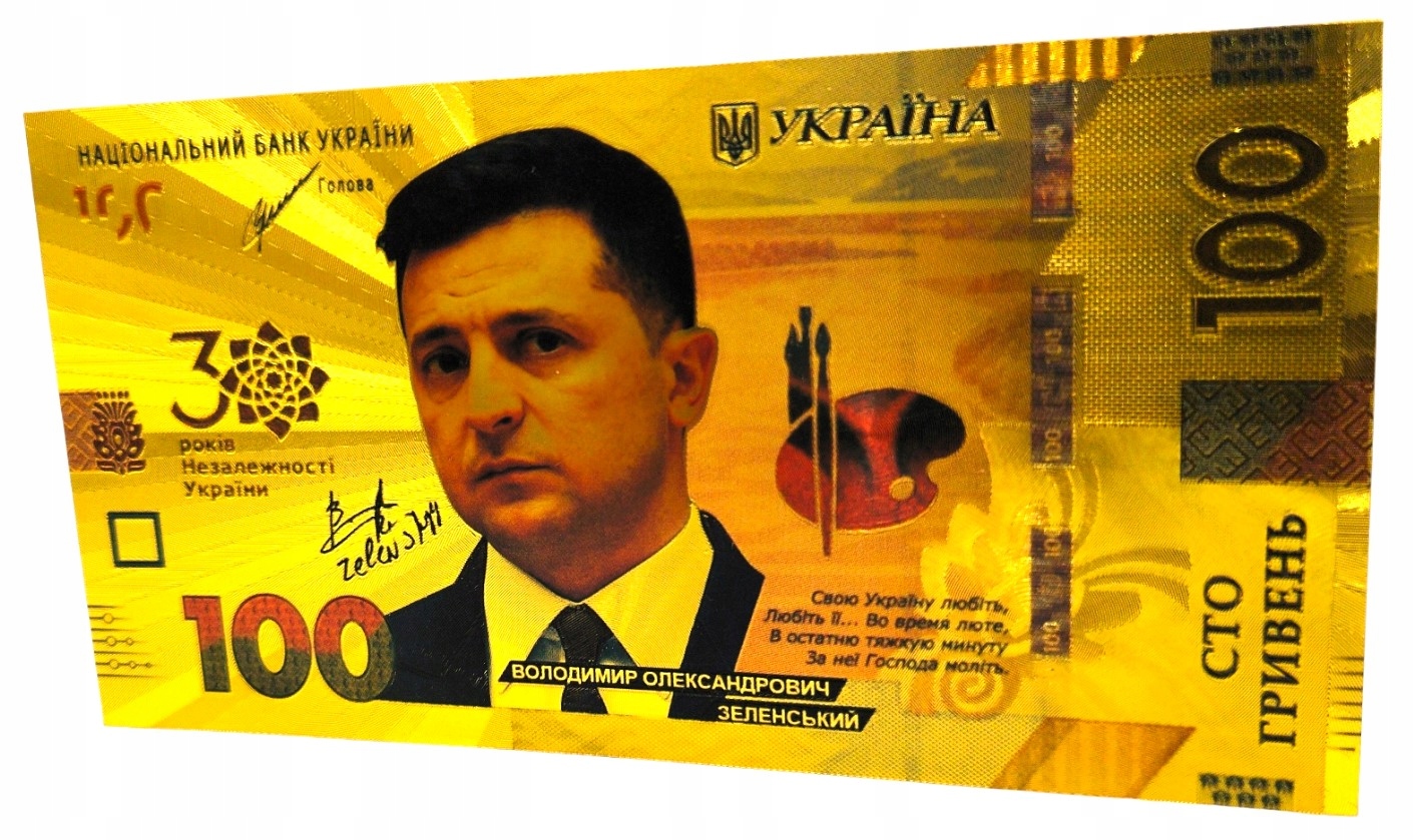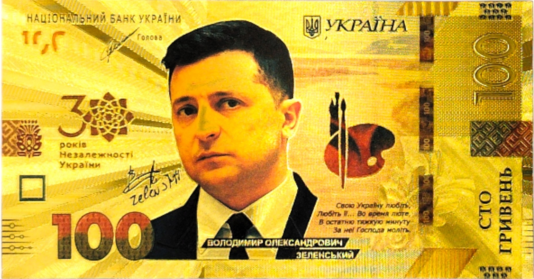 ПОЗОЛОЧЕННАЯ БАНКНОТА 100 ГРНИВ ВЛАДИМИР ЗЕЛЕНСКИЙ
