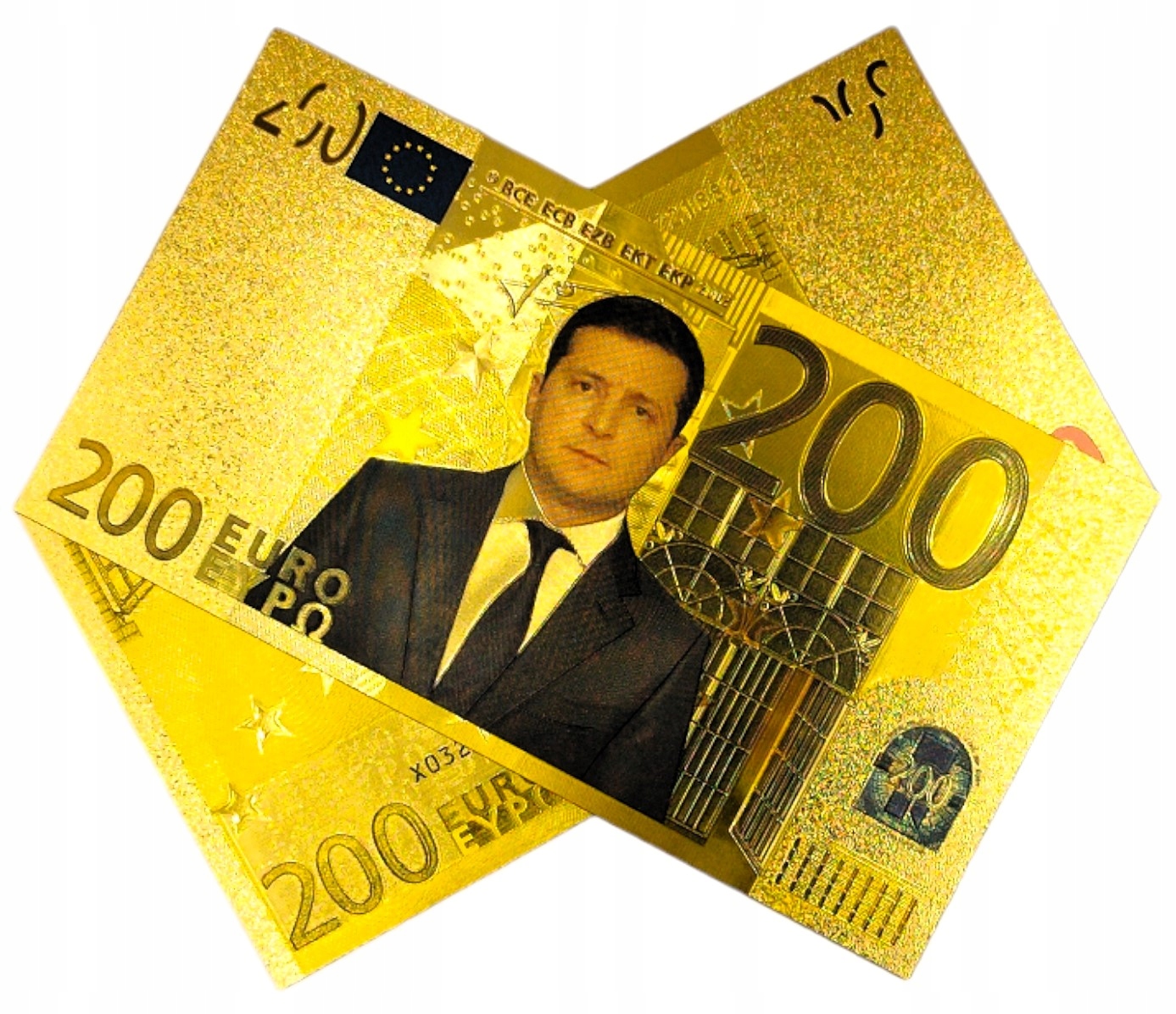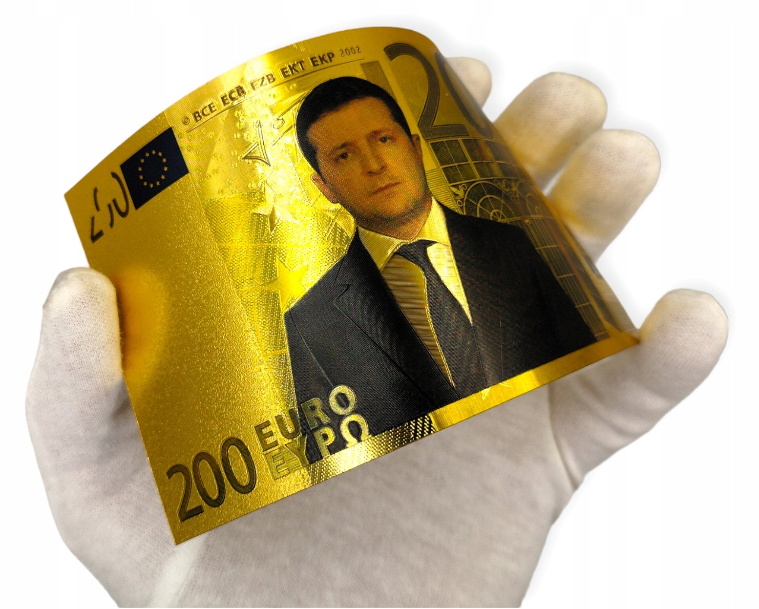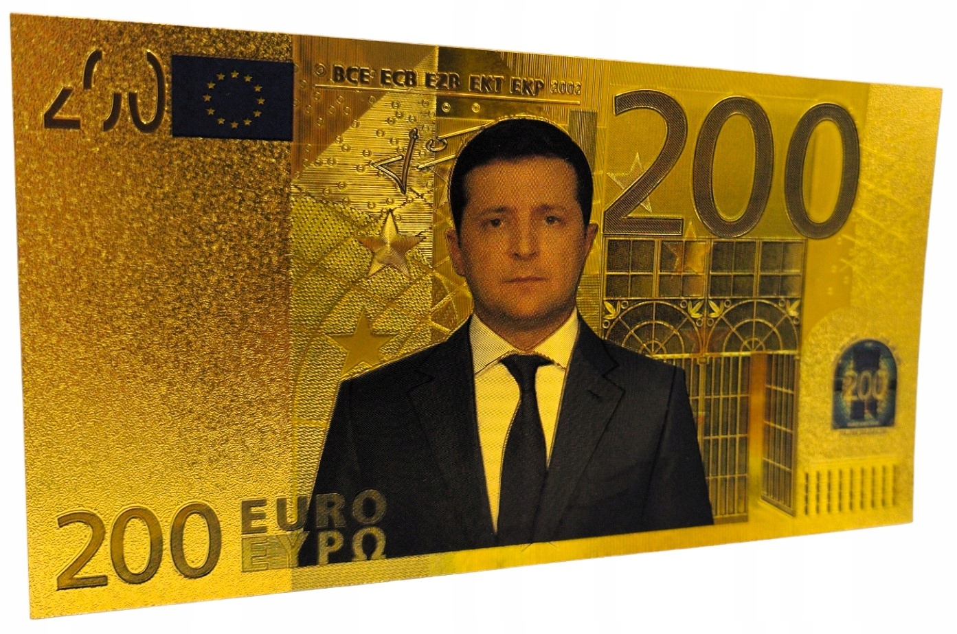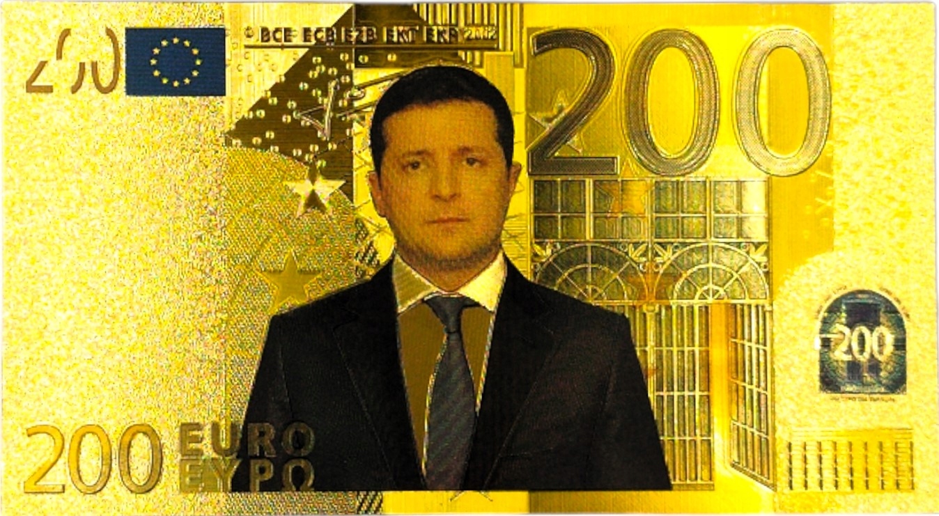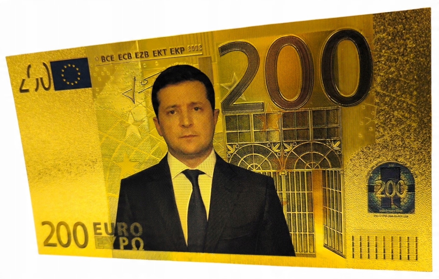 ПОЗОЛОЧЕННАЯ БАНКНОТА 200 ЕВРО ВЛАДИМИР ЗЕЛЕНСКИЙ