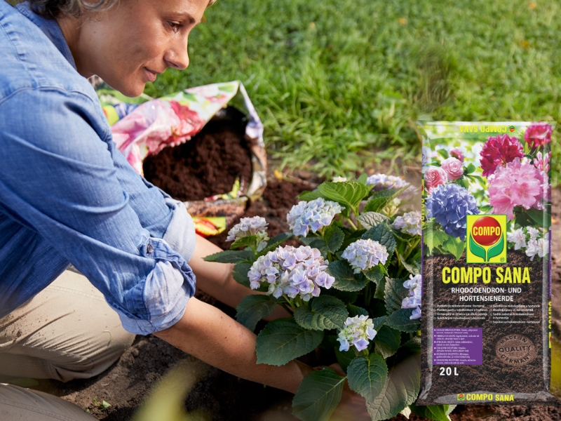 ЗЕМЕЛЬНИЙ СУБСТРАТ ДЛЯ РОДОДЕНДРОНІВ, ГІДРЕНЗІЙ, АЗАЛІЙ, МІСТИТЬ 20Л COMPO ДОБРИВА