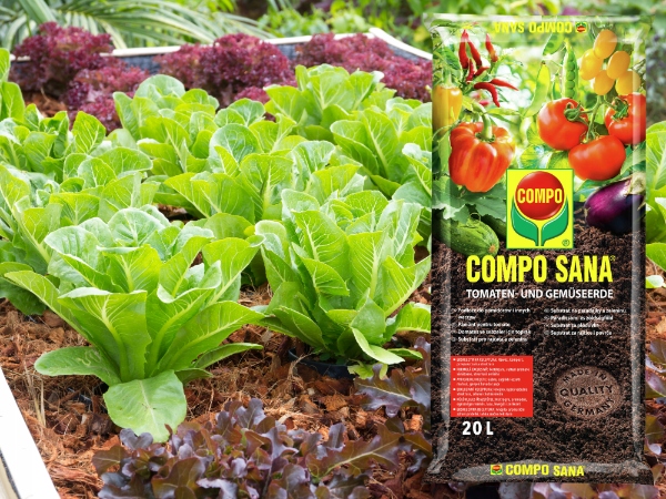 Перед посадкой растений смешайте верхний слой почвы с субстратом КОМПО в пропорции 1:1 или насыпьте слоем примерно 10 см.