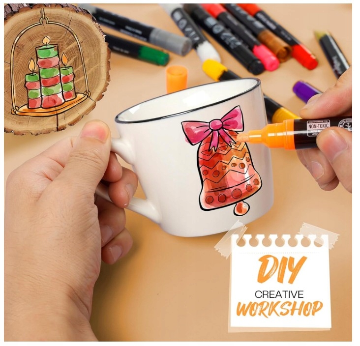 Маркеры с акриловой краской с высокой укрывистостью и выразительными цветами. Маркеры для дерева, бумаги, холста, пенопласта и пластика. Ручка с акриловой краской быстро сохнет, водонепроницаема и обладает очень хорошей светостойкостью.