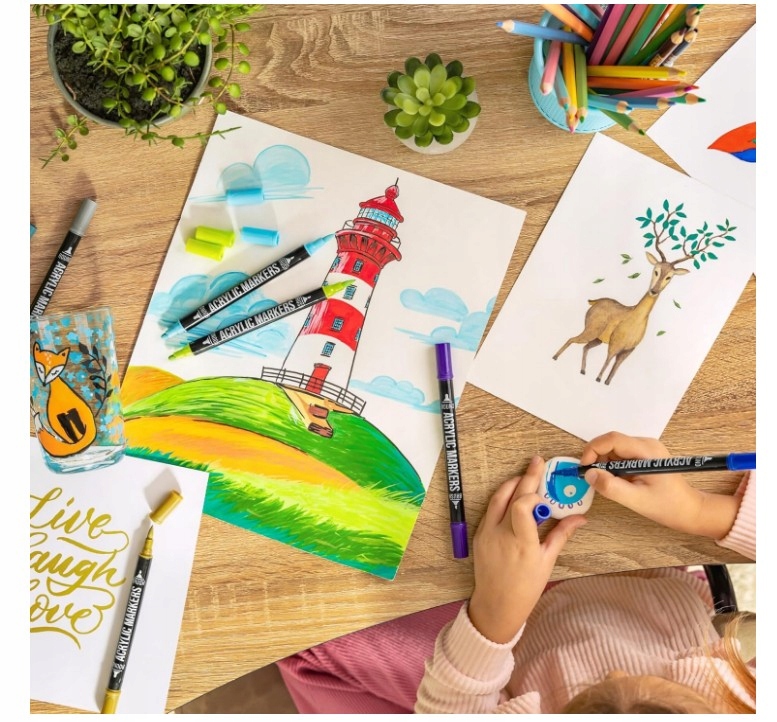 Чрезвычайно прочные, без запаха, универсальные, удобные и простые в использовании, это маркеры акриловые, т.е. художественные инструменты, с помощью которых можно придать настоящую глоток свежести разнообразной творческой деятельности. В то время как обычные маркеры в основном используются для рисования на бумаге, акриловые маркеры открывают гораздо больше возможностей. Это незаменимые творческие инструменты в руках художников, графических дизайнеров, студентов-художников, а также всех людей, которые увлечены искусством, граффити, декорированием или выражают свои художественные навыки и видения в качестве хобби.