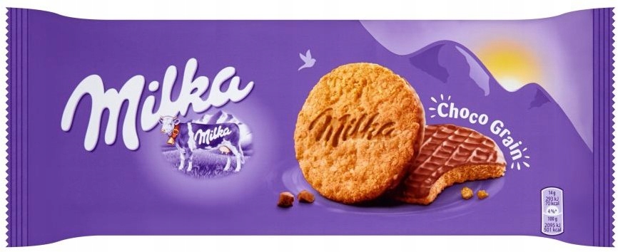 Печенье с овсяными хлопьями и цельнозерновой мукой, покрытое альпийским молочным шоколадом.