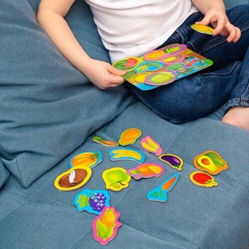 Набор мягких магнитов познакомит вашего ребенка с различными фруктами и овощами. Выучите их имена, узнайте, что они едят и как разговаривают, запомните их свойства.