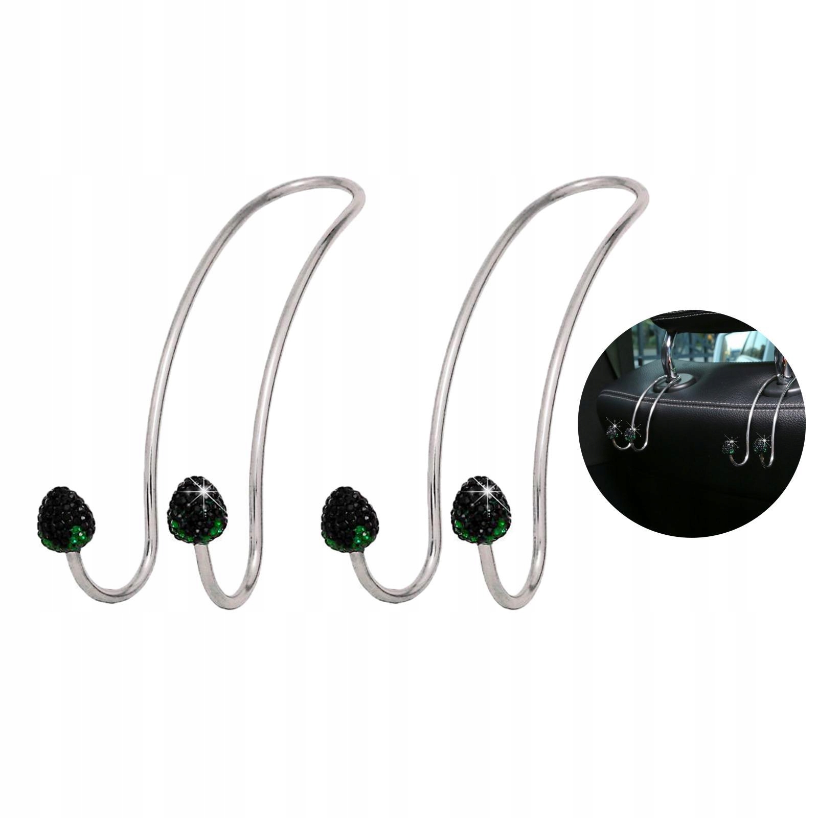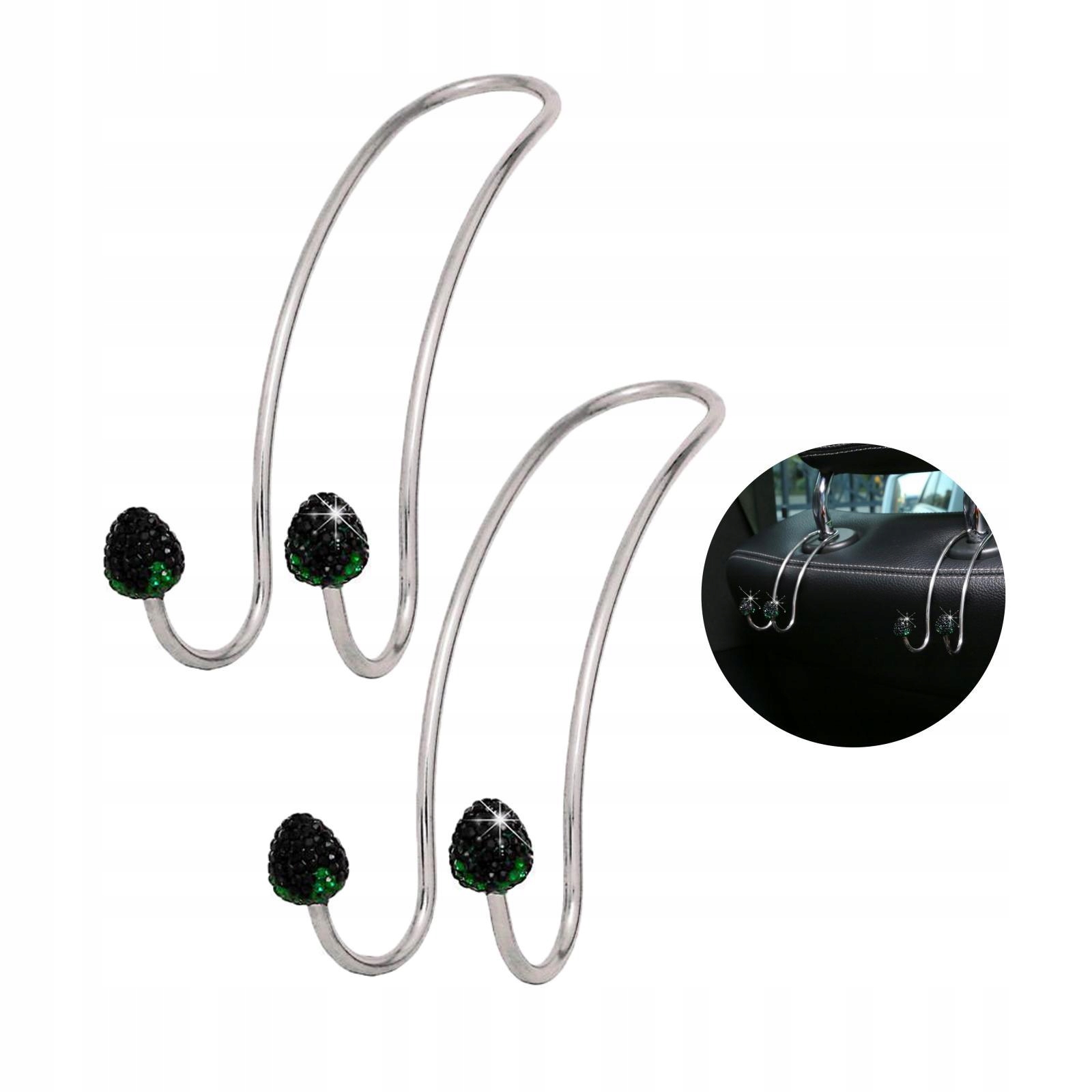 Zestaw 2 haczyków na zagłówki tylnych siedzeń samochodowych. Metalowe cyrkonie w kolorze truskawkowej czerni