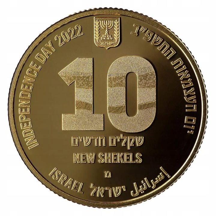На аверсе изображен герб Израиля и надпись «ДЕНЬ НЕЗАВИСИМОСТИ 2022». На аверсе монеты содержится информация о номинале, году и стране изготовления, написанная на иврите, английском и арабском языках.