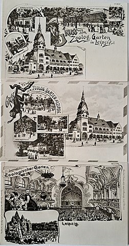 ZESTAW 3 POCZTÓWEK - ZOO - LIPSK - HISTORISCHE POSTKARTE -DDR REPRINTY 1977