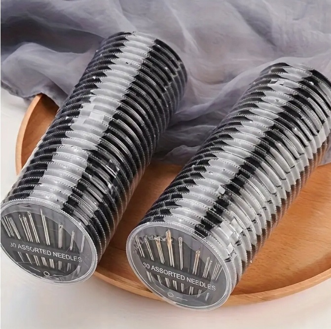 ZESTAW 30 IGIEŁ IGŁY DO SZYCIA W DOMU OKRĄGŁE OBROTOWE PUDEŁKO NIEDOWIDZĄCY