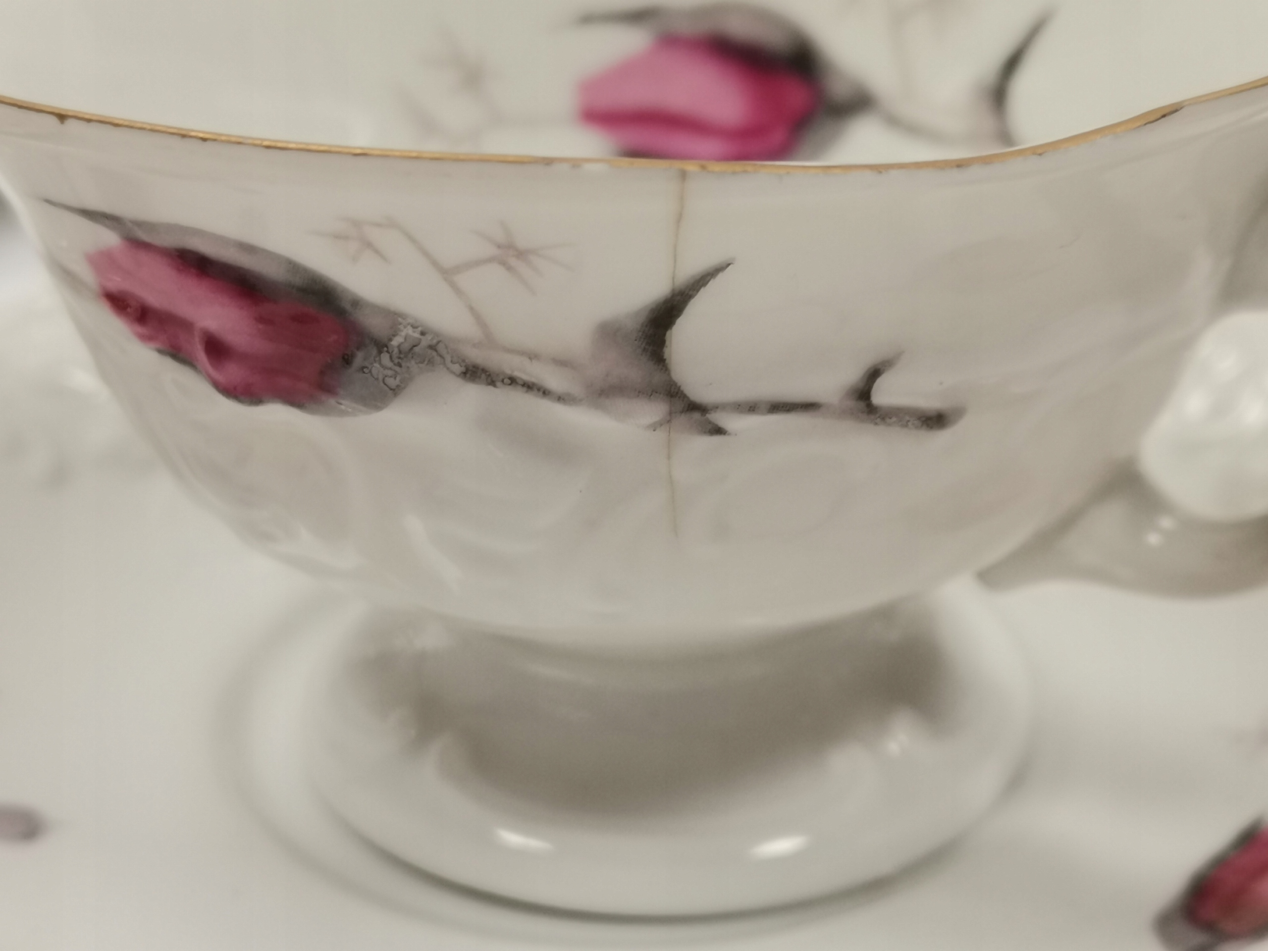 Состояние: Чашки в целом в хорошем состоянии, одна имеет небольшую трещину и помятость, но не протекает (см. фото)