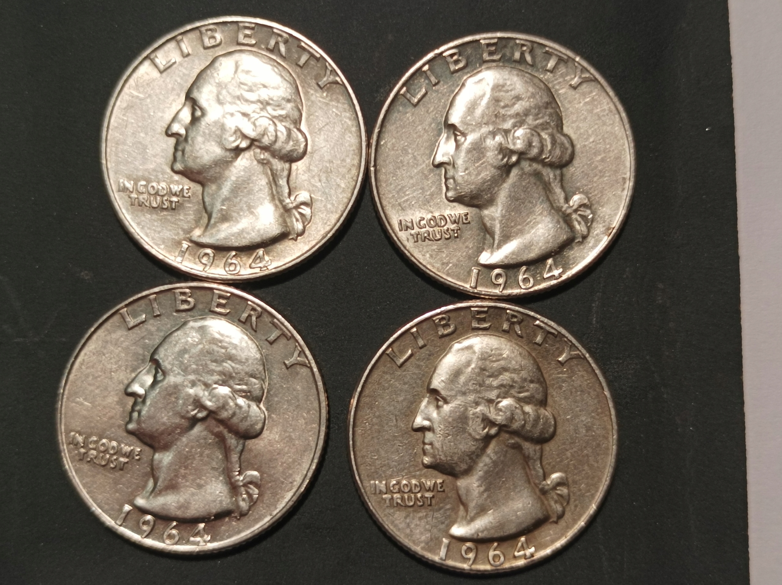 Набор из 4 монет достоинством 1/4 четверти доллара, серебро 1964 года, D, Денвер,
