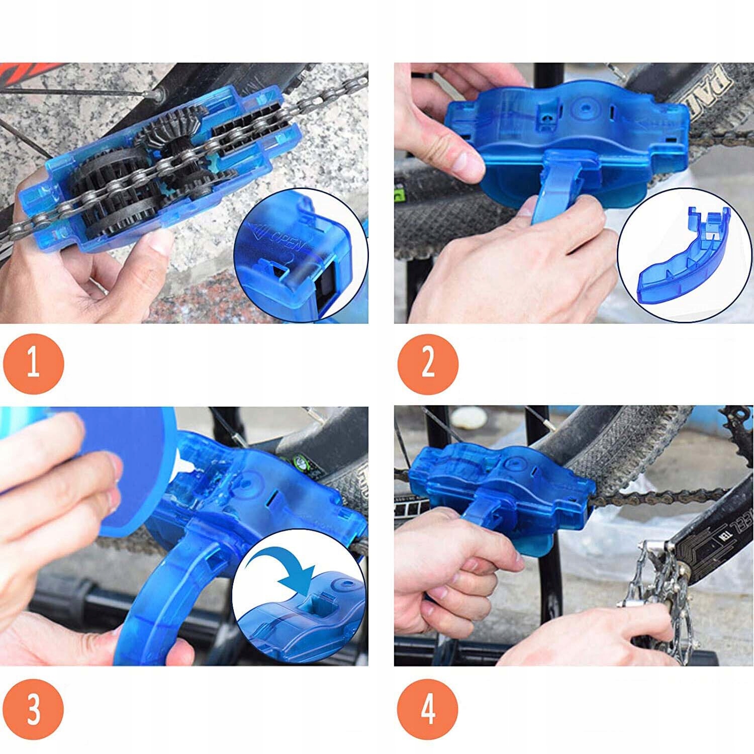🚲🚲 【Подходит для всех типов велосипедов】Велосипед Очиститель цепи эффективен для очистки цепи велосипедов с переключателями и без них (в том числе городских, гоночных, горных, трекинговых и других).
