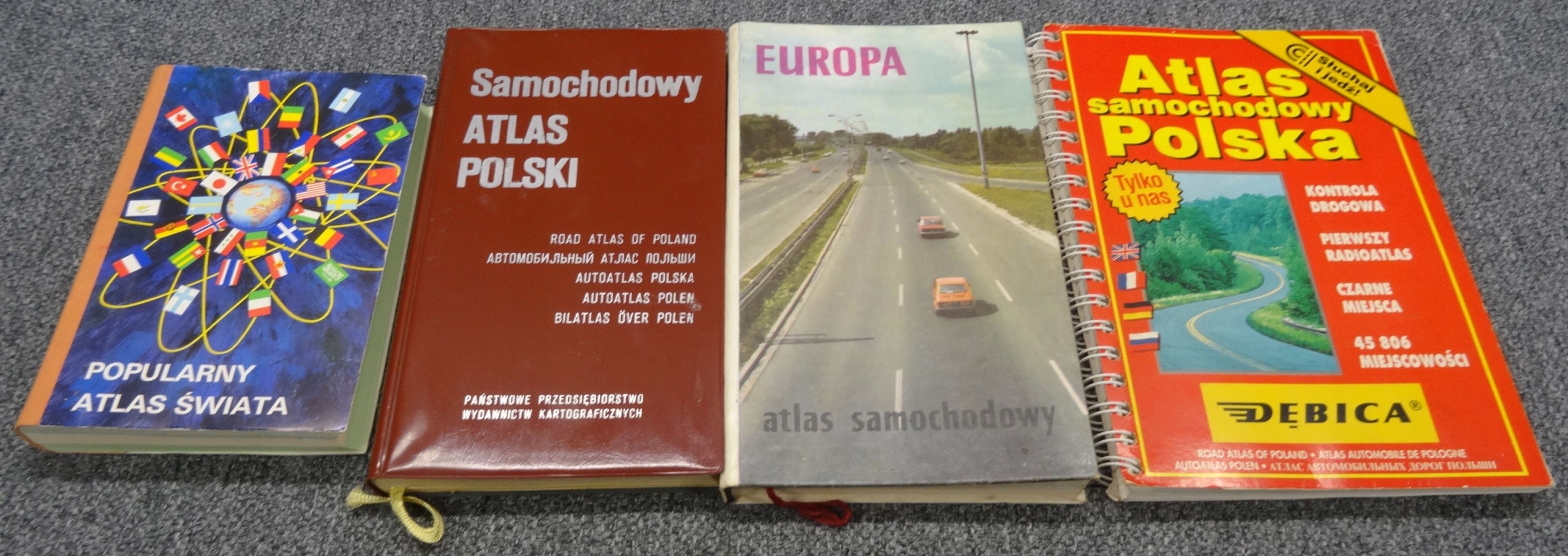 Zestaw 4 szt POPULARNY ATLAS ŚWIATA, SAMOCHODOWY ATLAS POLSKI, EUROPA ATLAS