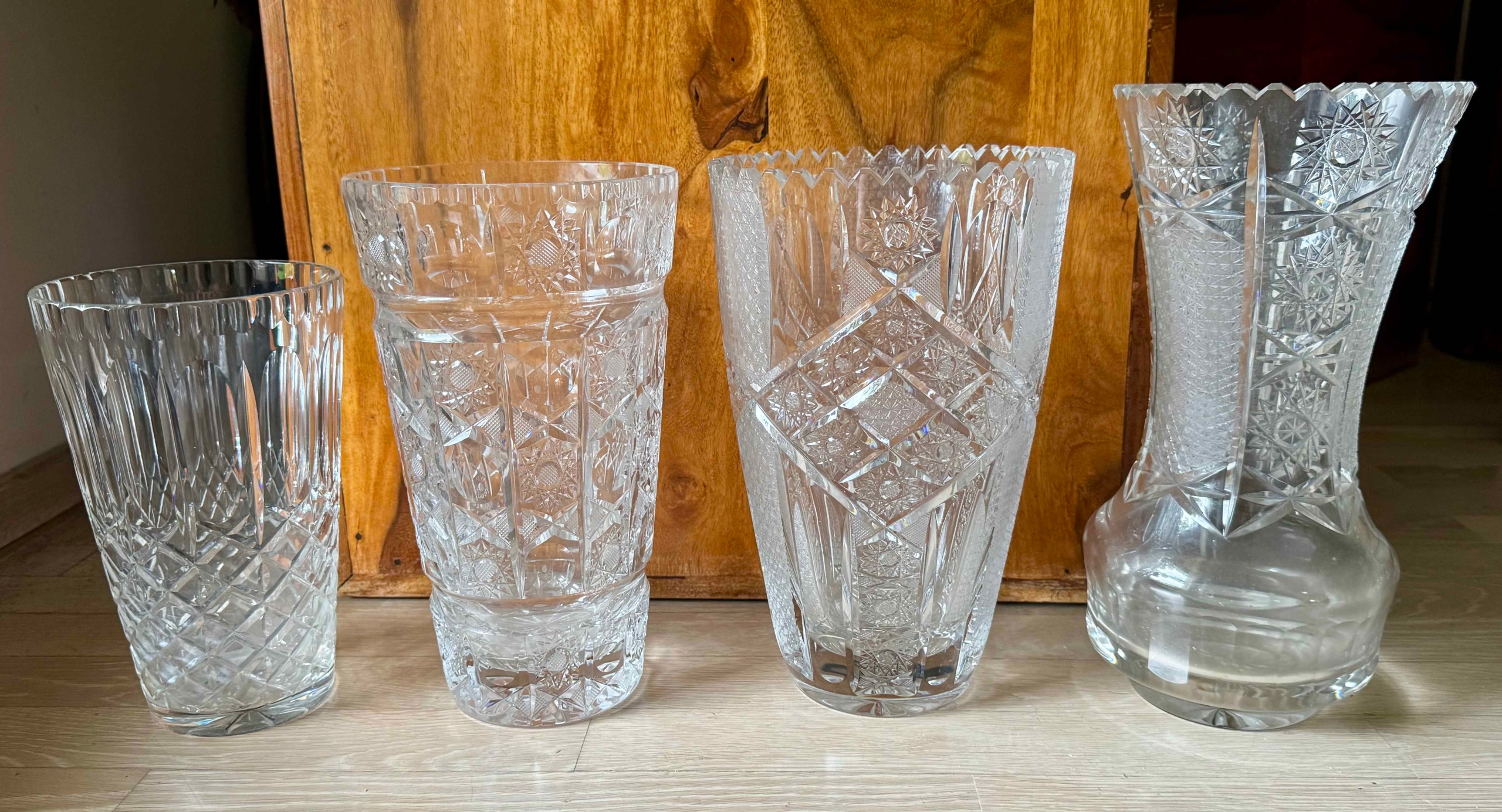 Zestaw 4 Wazonów Kryształowych PRL – Ręcznie Szlifowane, Vintage, st. bdb.