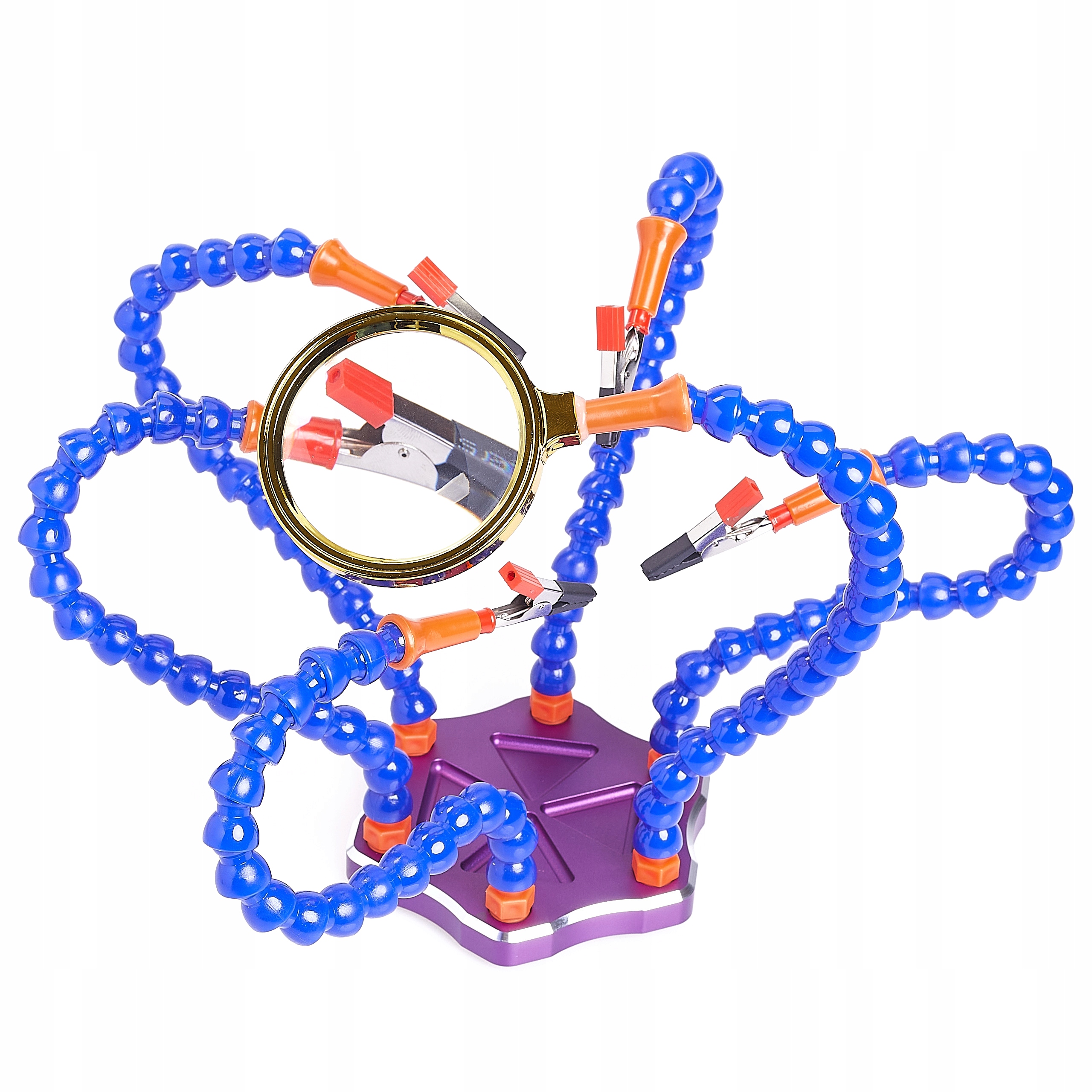 ✅Это незаменимый инструмент в работе при ремонте электроники. Идеально подходит для пайки и других работ, где двух рук недостаточно! 5 кронштейнов и дополнительный для лупы, все с зажимами типа «крокодил», установлены на металлическом основании с местом для хранения мелких предметов, например, шурупов. Этот комплект гарантирует точность и надежность в комфортных условиях