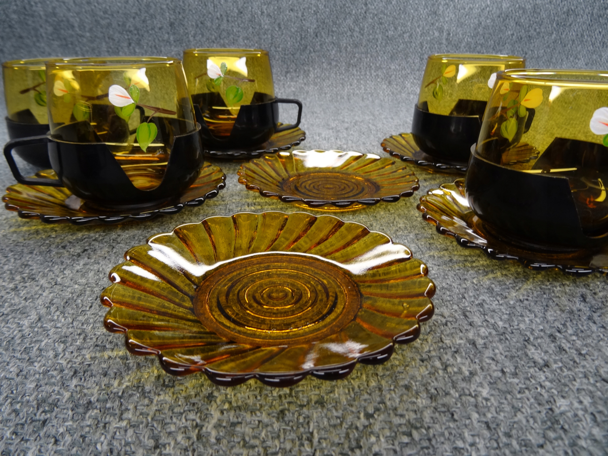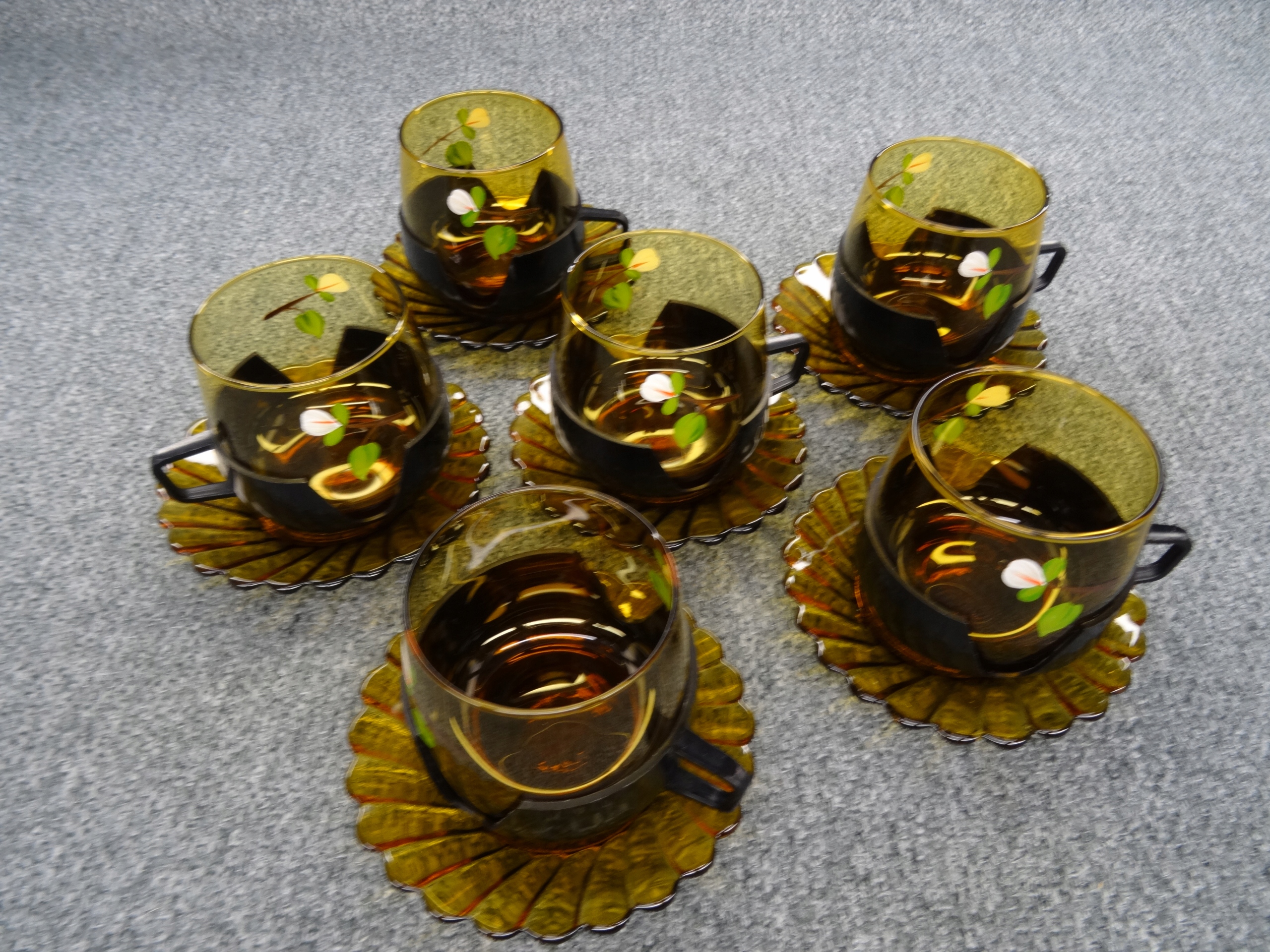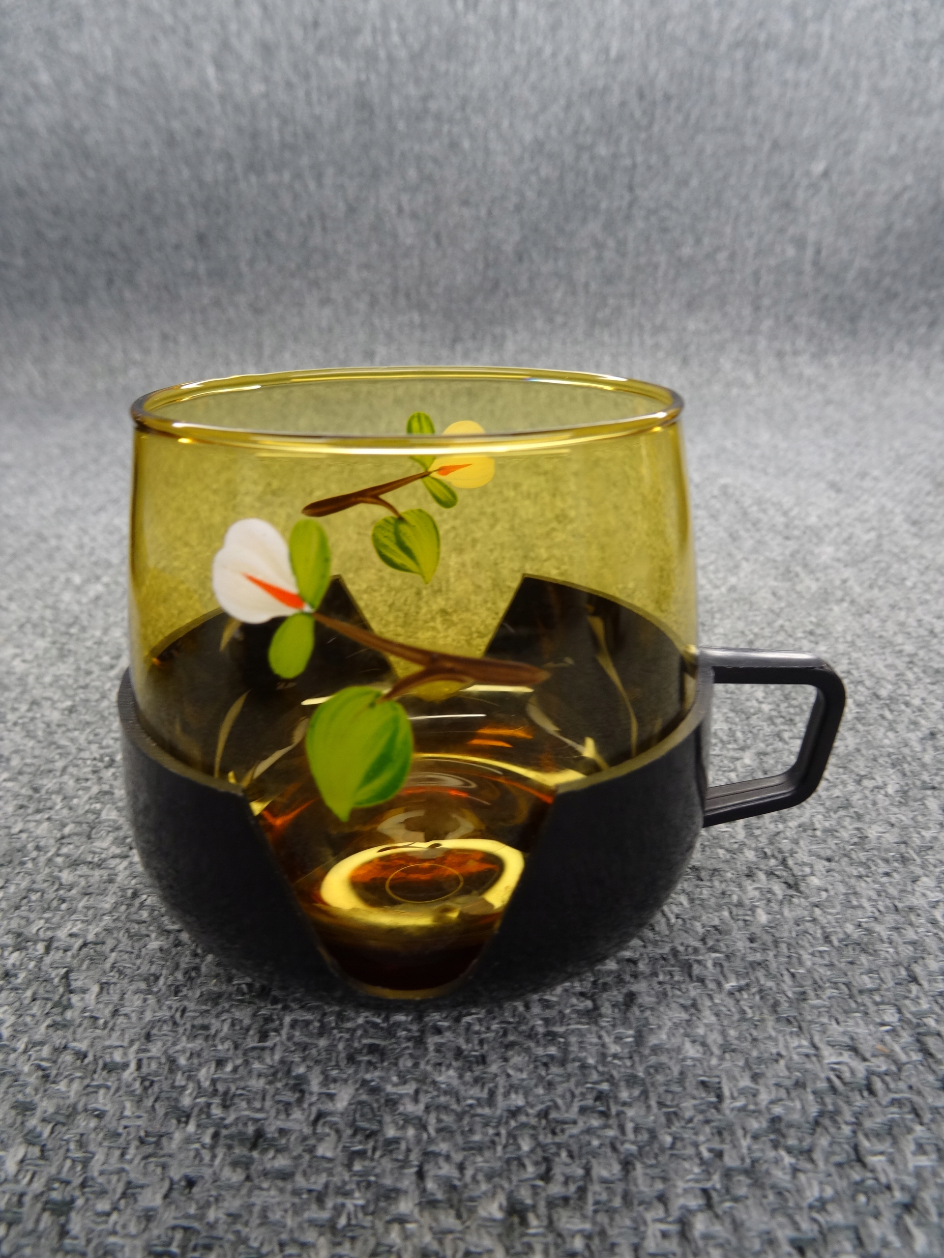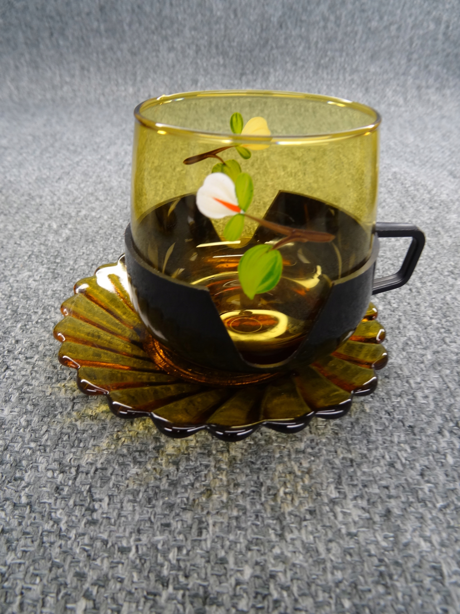 Zestaw 6 szt. szklanki w koszyczkach + 6 szt. podstawki malowane kwiaty
