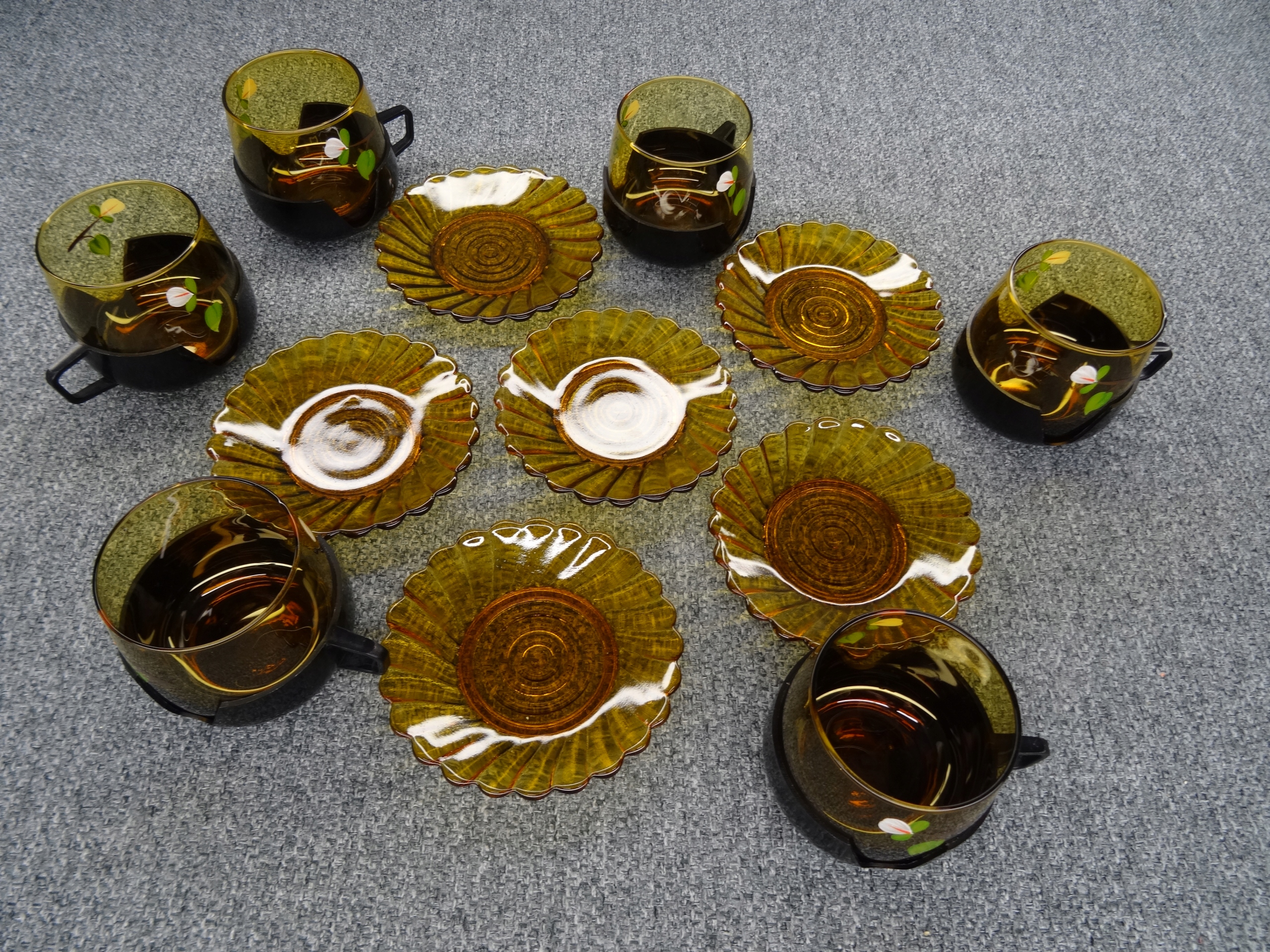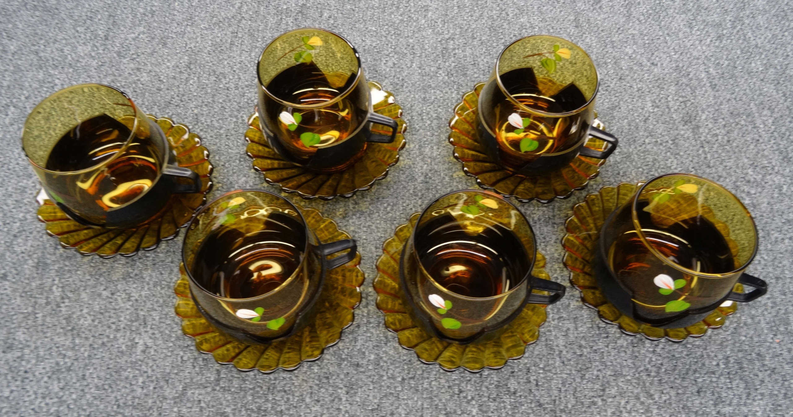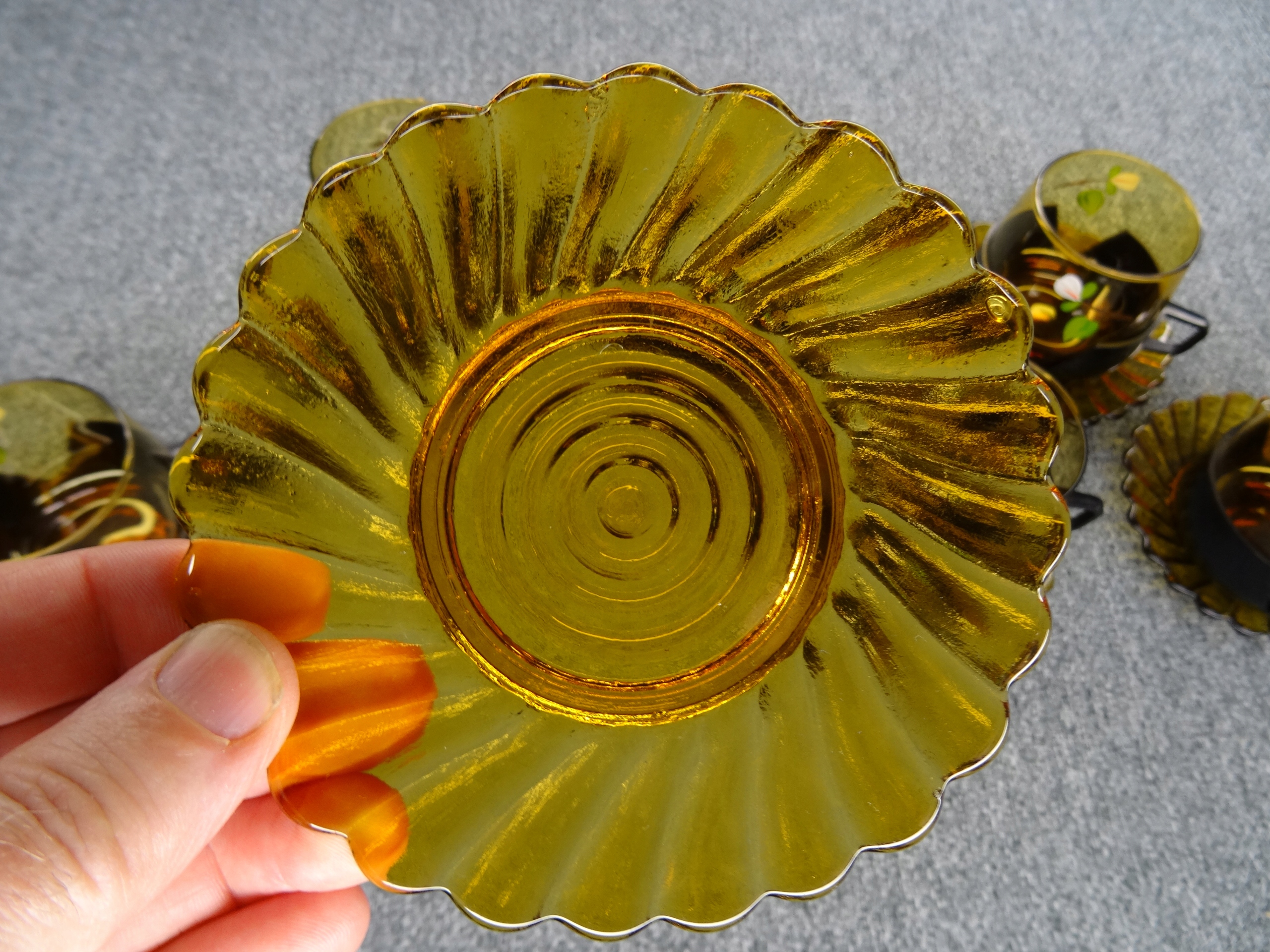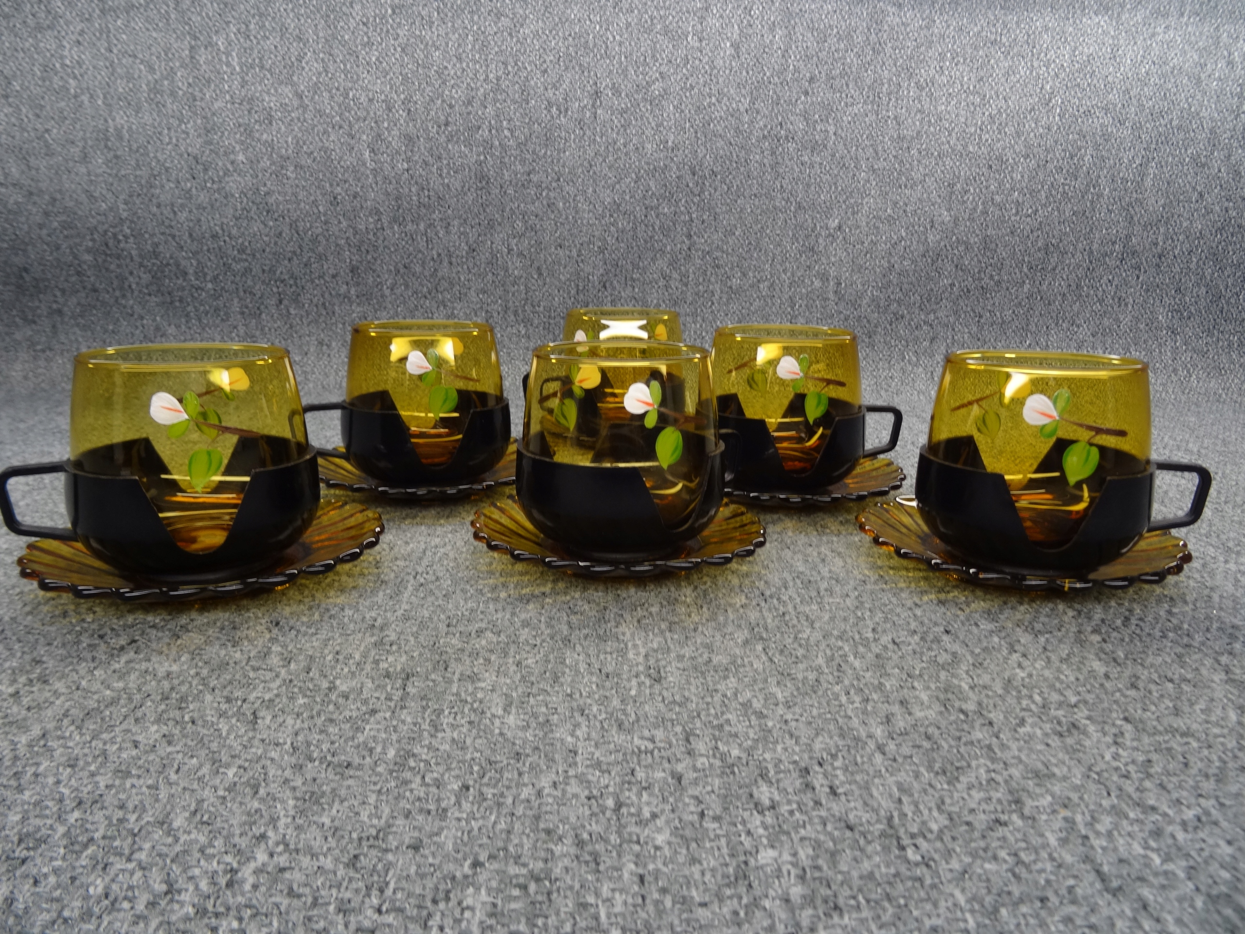 Zestaw 6 szt. szklanki w koszyczkach + 6 szt. podstawki malowane kwiaty