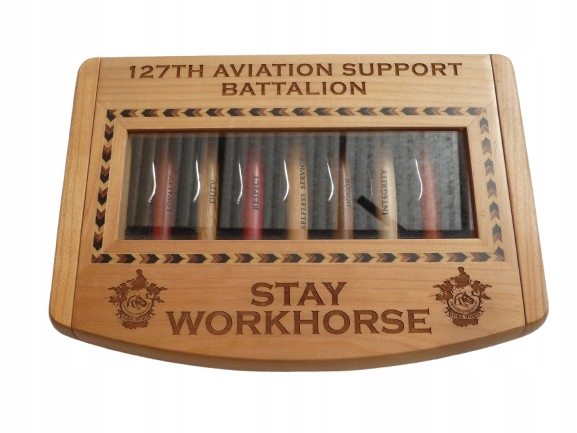 ZESTAW 7 PAMIĄTKOWYCH DŁUGOPISÓW W DREWNIANYM ETUI US ARMY LOGO